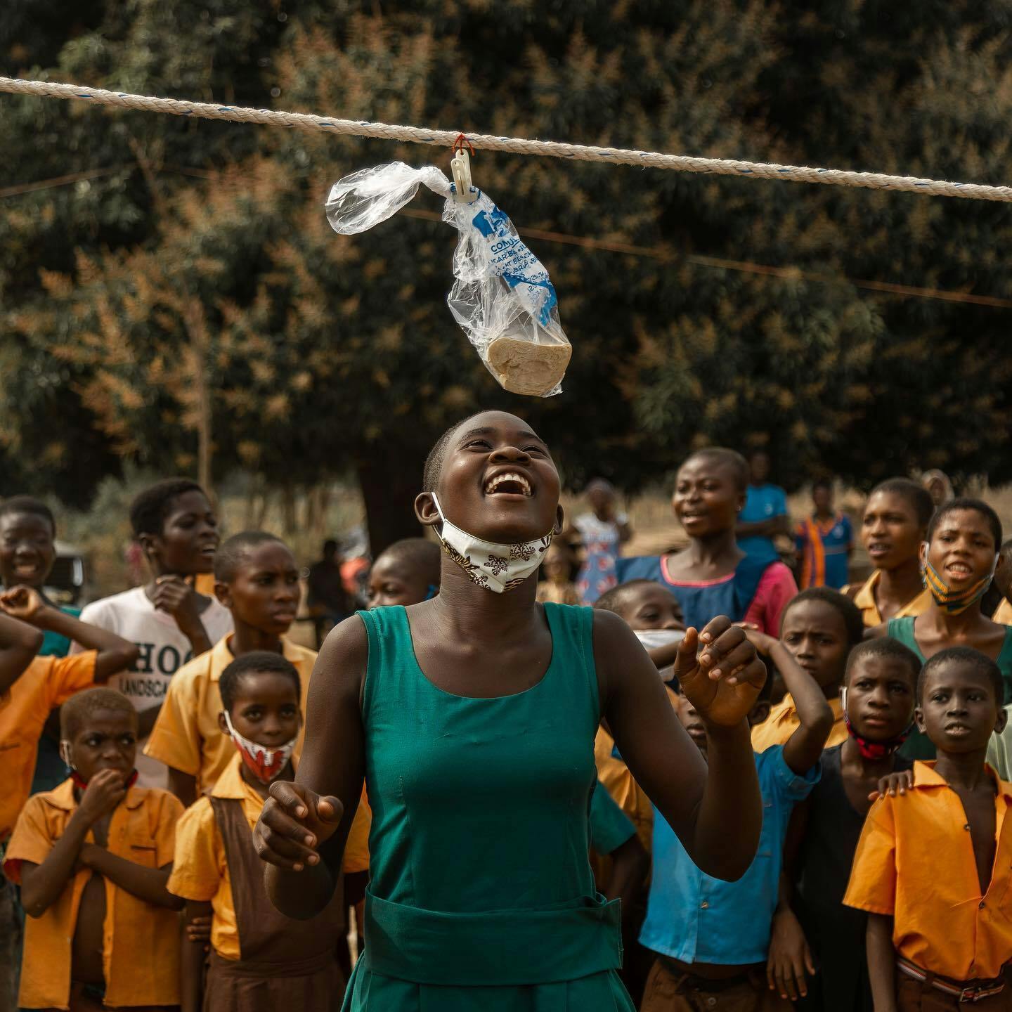 この日も日本では運動会でも目にする機会が多い、パン食い競走を実施しました。