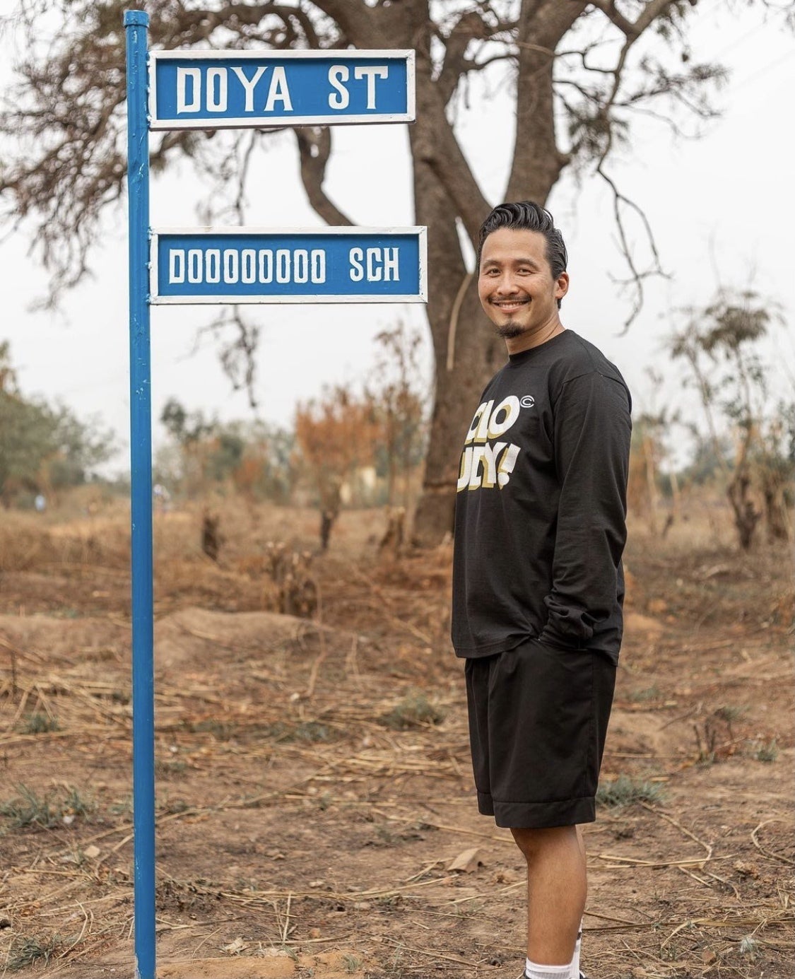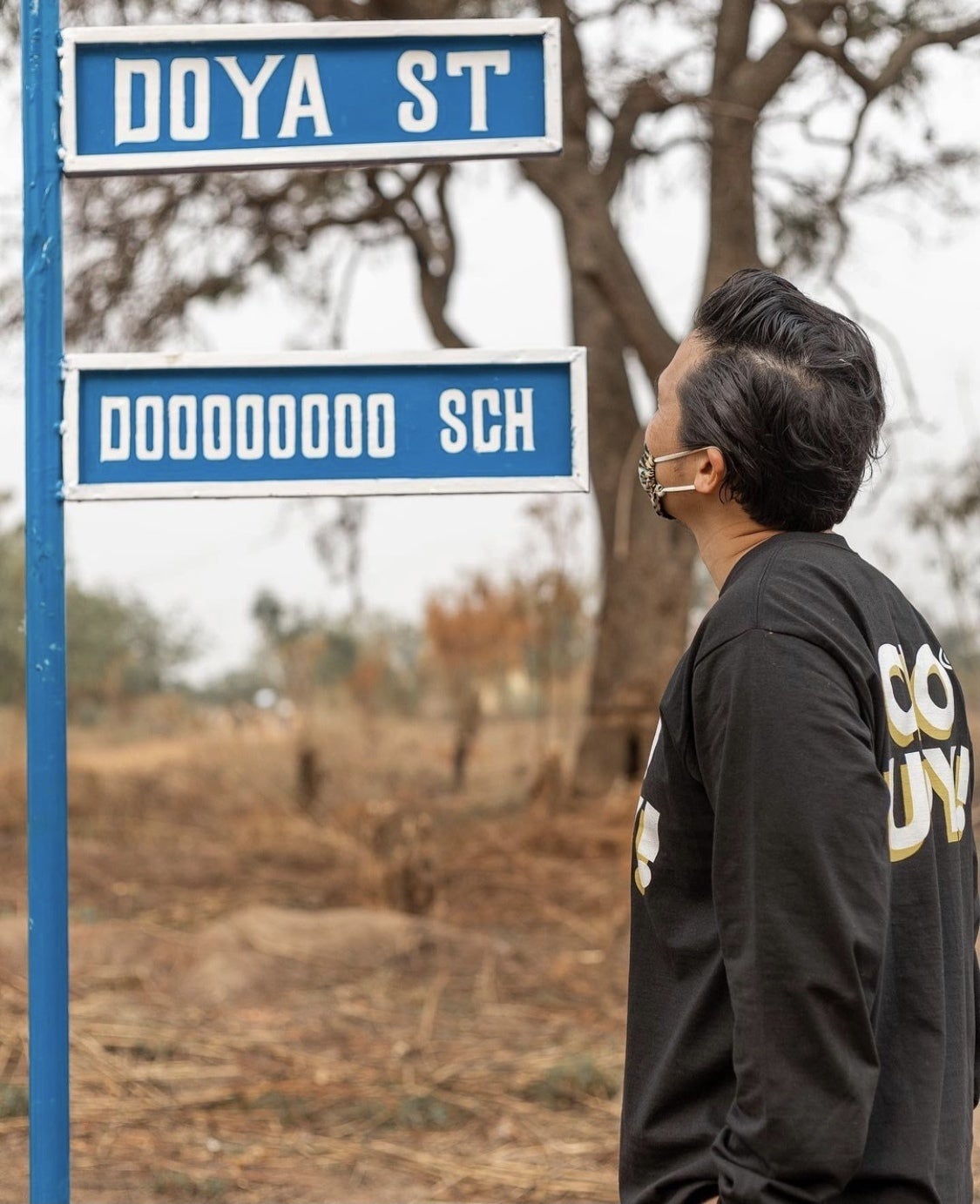 今回の中学校開校に際して、村のみんながサプライズで標識を用意してくれました!そしてなんと。。学校へと続くその道が【DOYAストリート】と名付けられたのです。