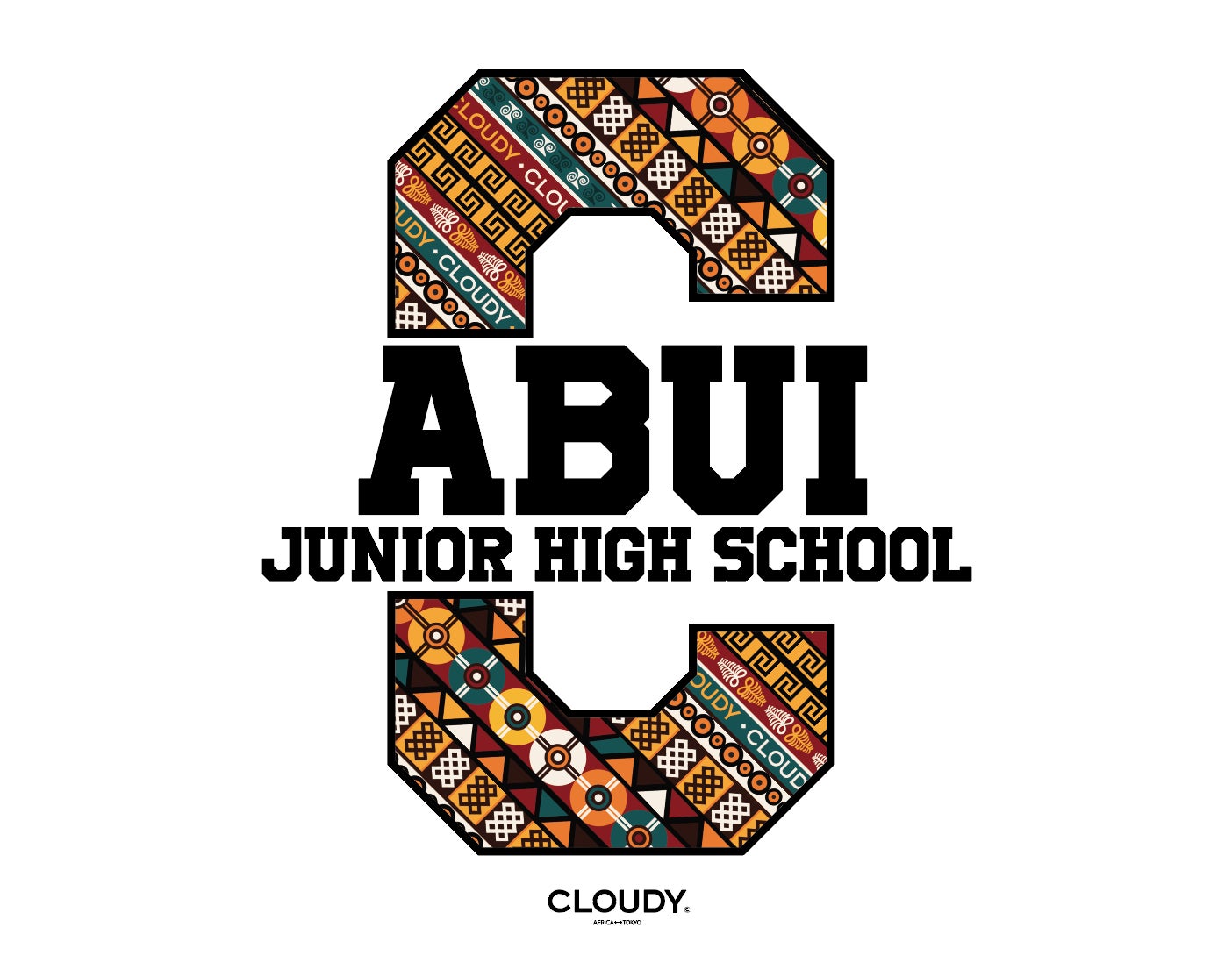 CLOUDYで育成しておりますガーナのデザイナーがデザインしましたオリジナルテキスタイルデザインを、今回開校しました"ABUI JUNIOR HIGH SCHOOL"のロゴと共にプリントしたデザインになります。
