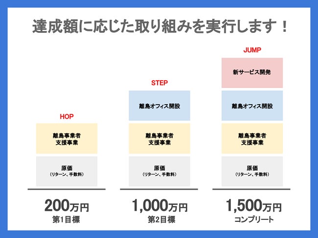 まず、200万円を達成した段階で、島の特産品やオリジナル商品をお届けするECサイトと連動した記事を制作し、通常のECサイトでは伝えきれない生産者のこだわりや思いなどの情報発信も積極的に取り組みます。