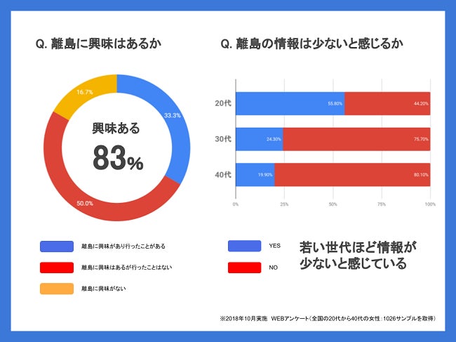 そこで、まずは全国の20代から40代の女性を対象にしたアンケートを実施し、このような離島専門サイトが必要とされているのかニーズ調査を行いました。