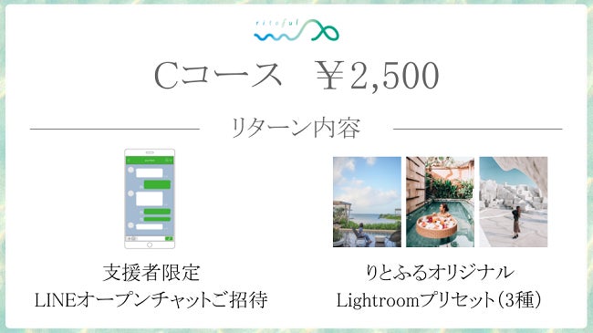 2021/05/07 12:56こんにちは、りとふる編集部の長谷川です。とうとう、りとふる初のクラウドファンディングの期間も残り3日となりました。ご支援をしていただいた方々、本当にありがとうございます!5月6日現在、26名の方から200,500円のご支援をいただいております。ラストスパート、ぜひお知り合いの方にも声を掛けていただけたらと思います。よろしくお願いいたします。みなさんは普段、ちょっとした日常の写真や、旅行をしたときの写真はどのように保管されていますか?せっかく記念に残しておくのであれば、りとふるの返礼品の「プリセット」を使って簡単にきれいに記録してみてはいかがでしょうか。今回は、離島好きの方が使いやすいような、海や山、ホテルなどのシーンに合わせて使えるプリセットを用意しました!一度プリセットをダウンロードすれば、いろいろな写真をワンタッチできれいに編集をすることができます。プリセットや「Lightroom」の無料アプリを使ったことがない方でも大丈夫♪プリセットをお届けする際にアプリの操作方法も一緒にお届けするので、それを見れば誰でも簡単に写真の編集ができますよ。PCがない方も、スマホさえあればOKです。実際に私も普段写真の編集をするときに99%携帯版Lightroomのみで編集しています!笑ぜひ最高の状態で記録を残してくださいね。今回ご紹介するのは、沖縄本島から船で渡ることができる離島「水納島(みんなじま)」です。島が三日月のような形をしているので“クロワッサンアイランド”と呼ばれ、多くの人に親しまれています。ゼリーのようにプルプルに輝く海が人気で、夏には海水浴やマリンアクティビティを楽しむ人で賑わっています。太陽の下で撮った写真をよりきれいに再現するのにもプリセットが役立つので、ぜひ離島の支援をしながらご自身の写真もきれいに残してみてくださいね♪ もっと見る