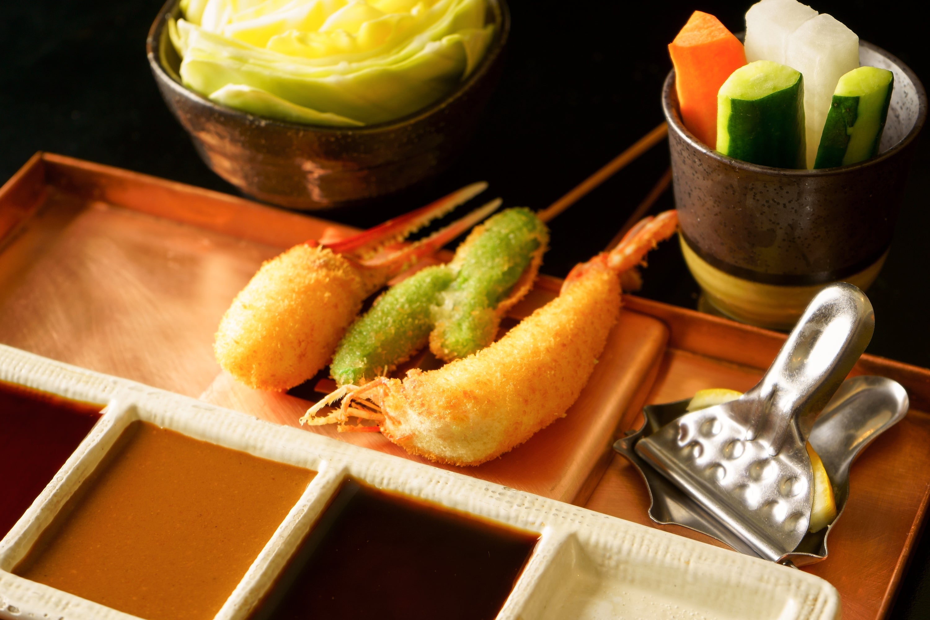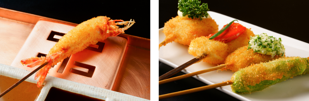 新鮮な素材や秘伝のフリッターは六波羅の串揚げにかかせません。ですが、いくら最高の材料が揃っていても美味しい串揚げが出来るわけではありません。長年培った技術を持つ匠の技によって、六波羅の美味しい串揚げは完成されます。