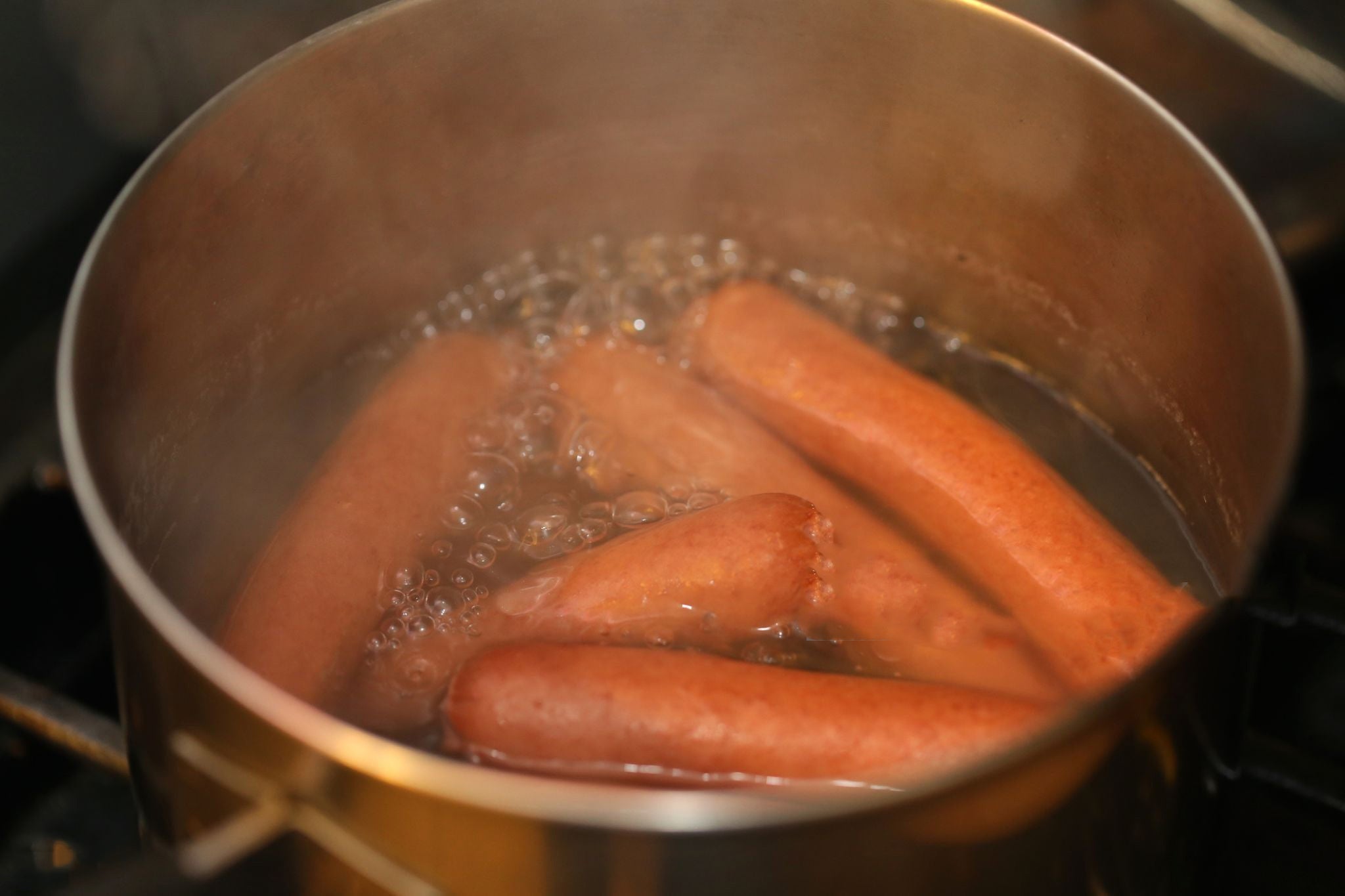 2. 沸騰したら、冷凍のソーセージを入れ、7~10分間茹でてお湯を捨てる