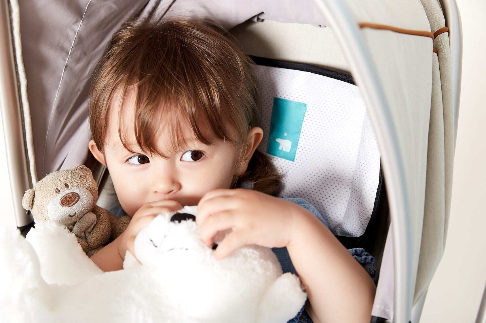 シルクパールテクノロジーを採用しており、従来のシート素材と比べて滑らかで柔らかく、大切なお子さまを包み込みます。