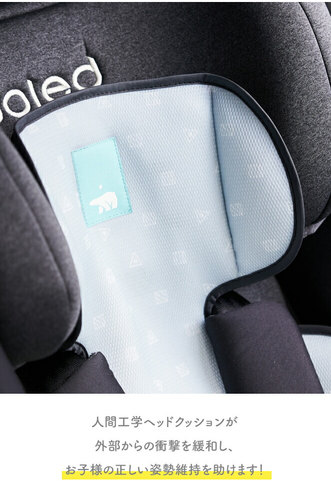 1段:(エアメッシュ):優れたクッション感があり風通しの役割があります。poled社の独自生産技術であるシルバーパールテクノロジーを採用しており、お子さまの移動時間に快適さを提供する工夫をしてます。