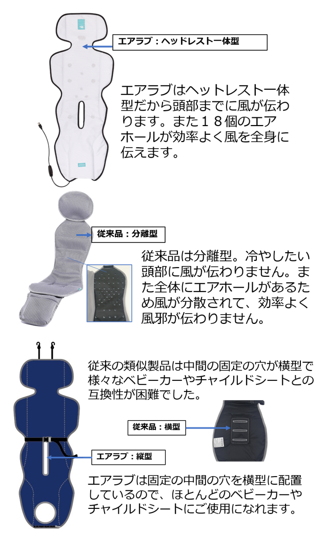 さらにエアラブはチャイルドシートを開発している経験から、様々な工夫をしています。