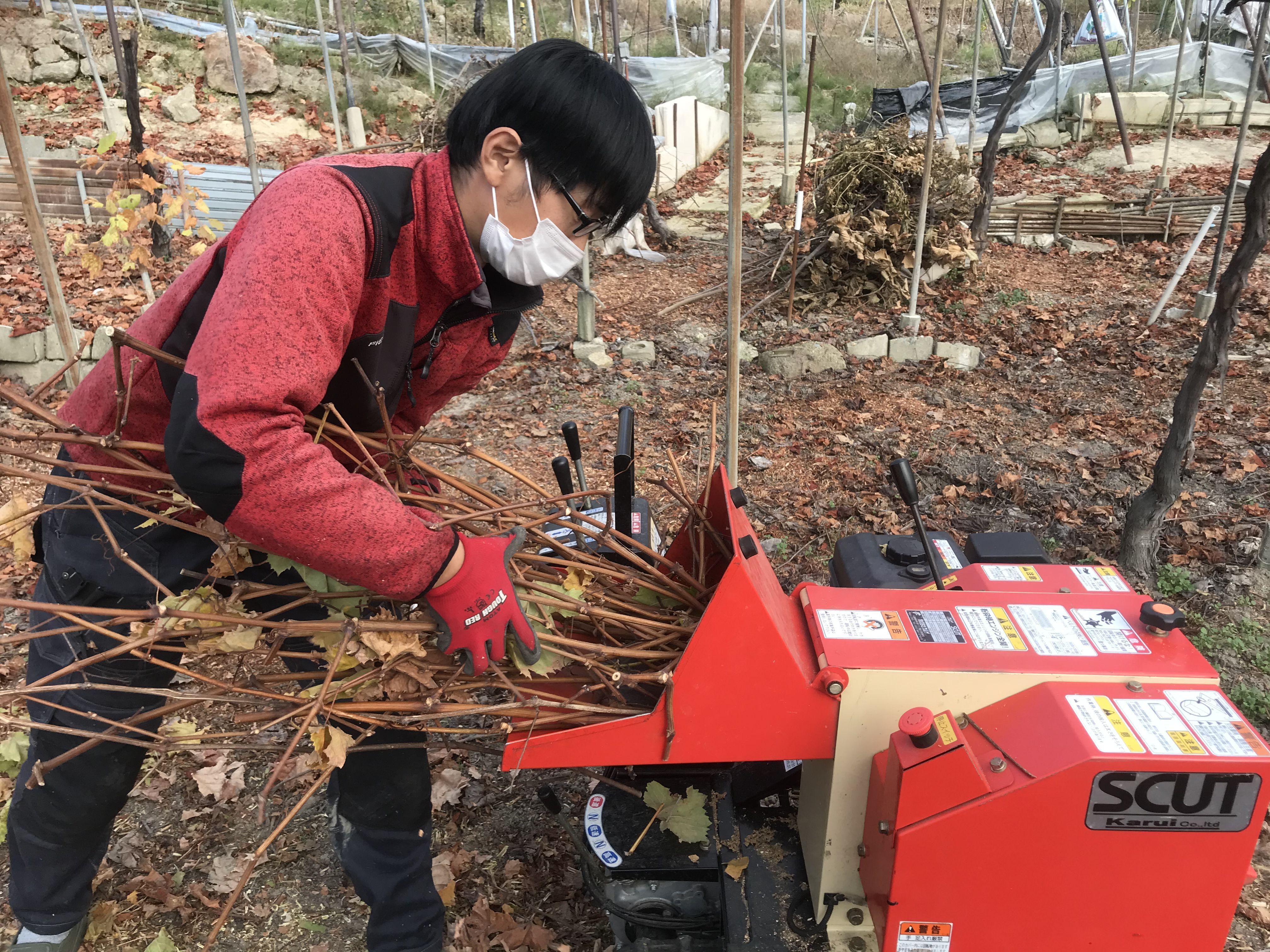 廃棄資源を再利用!ぶどう堆肥づくりの様子を動画に撮りました