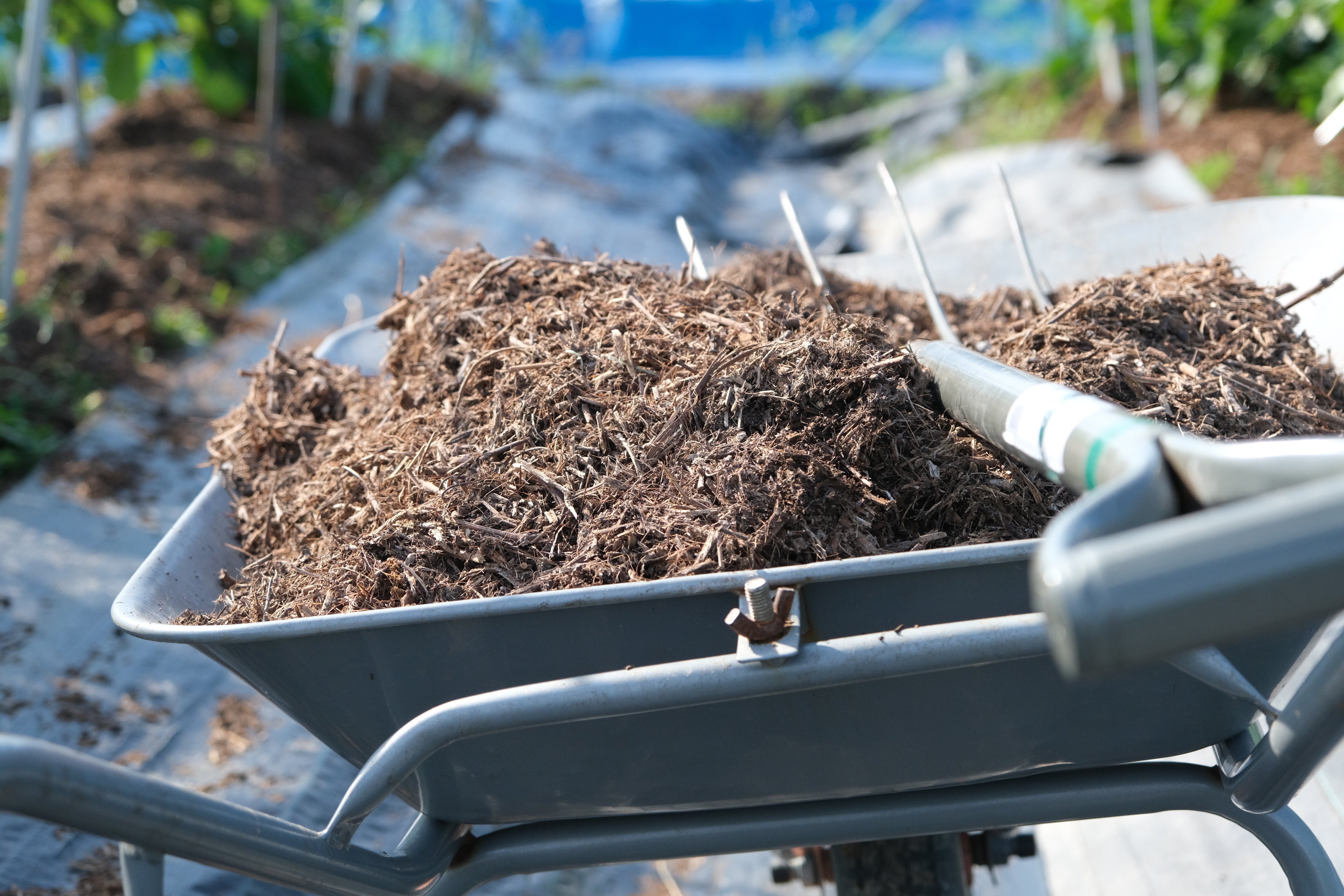 いま廃棄処分されている資源を、美味しい野菜や果物を作るための土づくりには欠かせない「堆肥(たいひ)」という資材に生まれ変わらせて、イチジク畑に入れます。