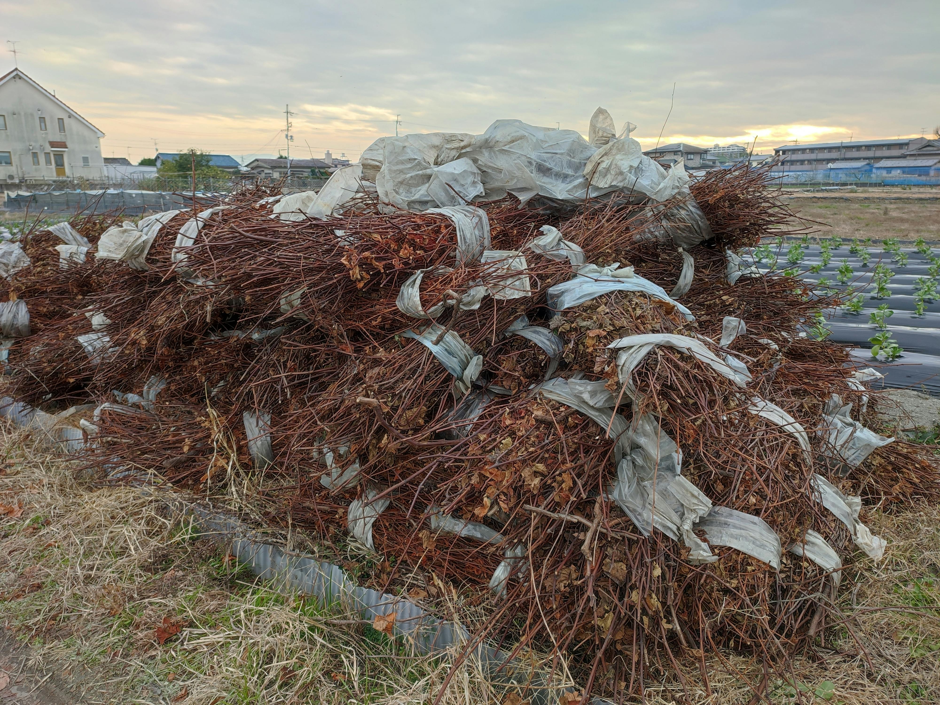 約2反半(2500平方メートル)のぶどう園から回収して、ひとまず積み上げました。