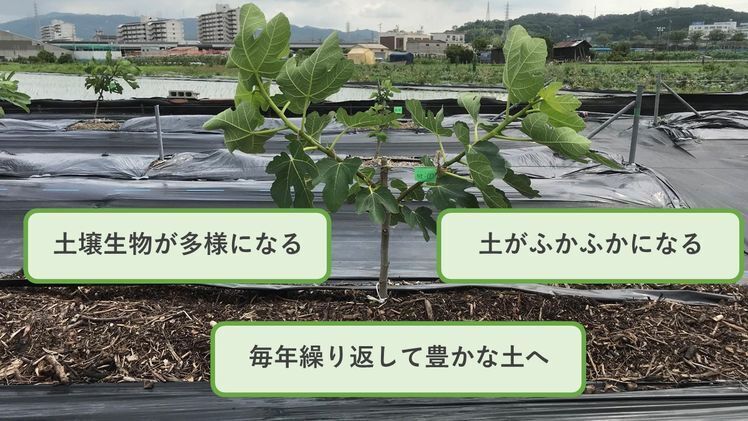 いま廃棄処分されている資源を、美味しい野菜や果物を作るための土づくりには欠かせない「堆肥(たいひ)」という資材に生まれ変わらせて、イチジク畑に入れます。