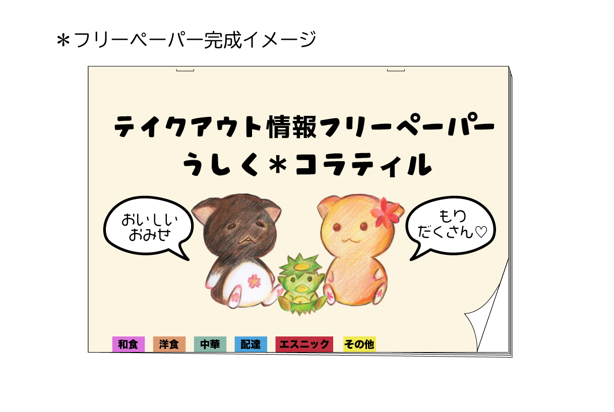 ブログおよびフリーペーパーでテイクアウトやデリバリーの情報を発信することで、牛久市内の飲食店の需要が増え、新型コロナウイルスの流行が終息するまでお店の維持ができるようになること!