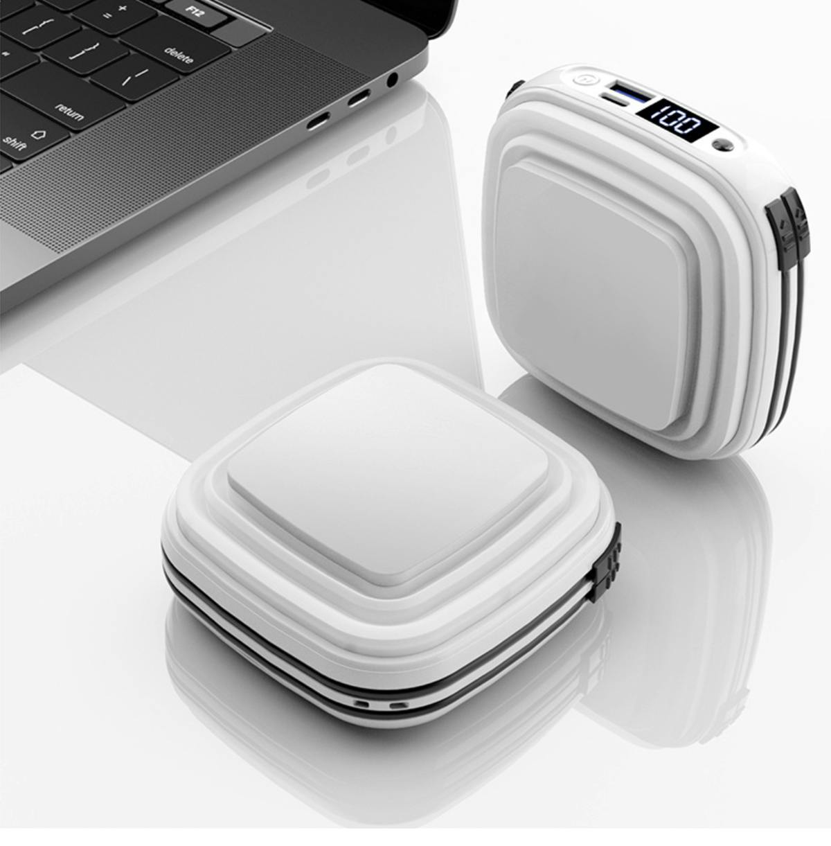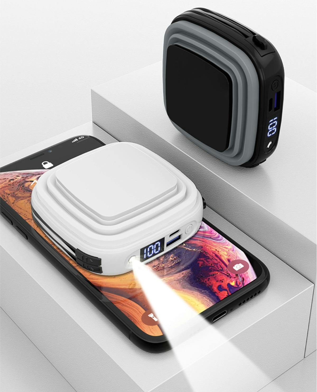この度、今までなかった機能をモバイルバッテリーに追加して、「なるほど、こんな使い方もありだな、なかなか新鮮な感じがする」という新たな利用体験に基づき、斬新なルックスを持つ新型多機能モバイルバッテリーを開発しました。