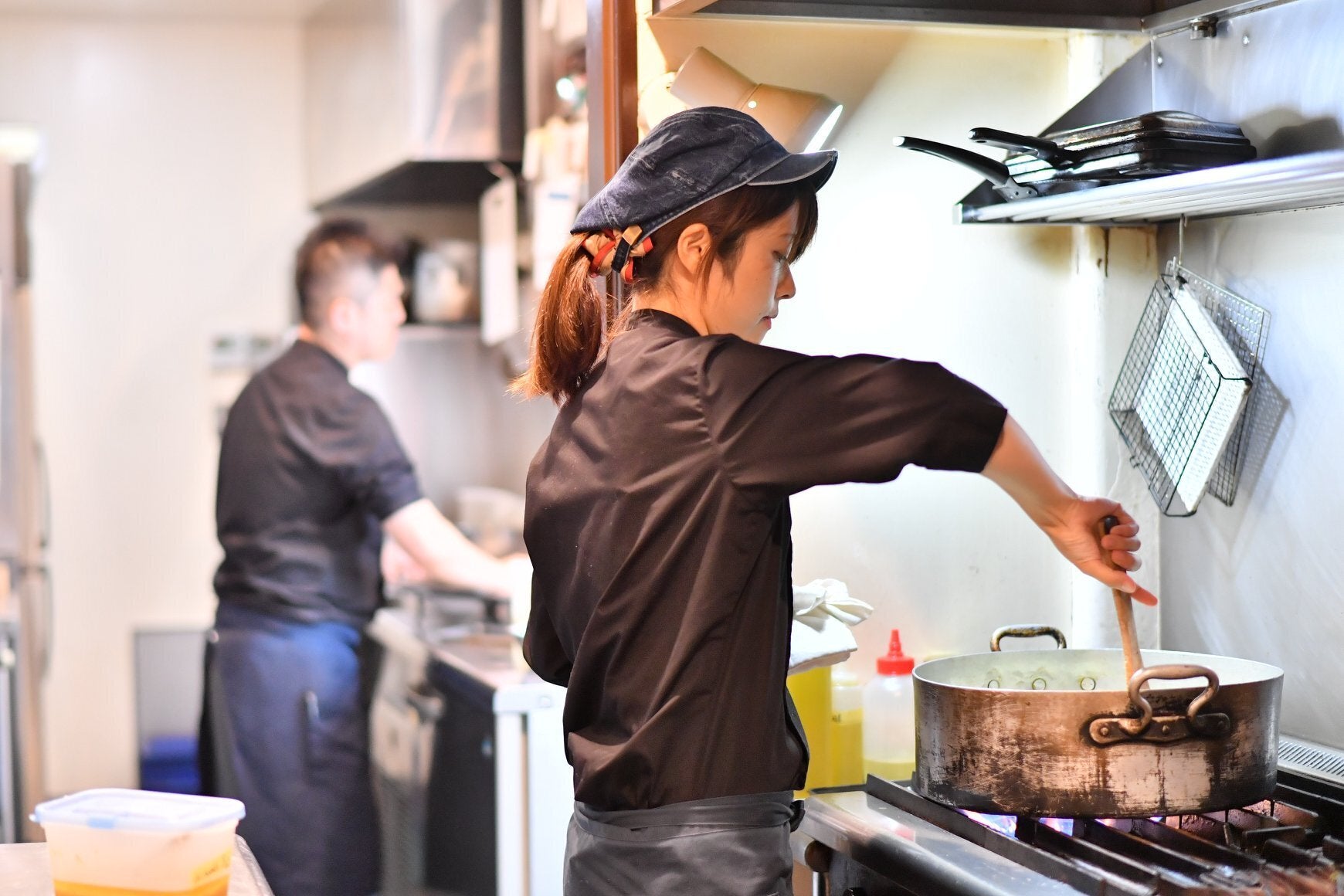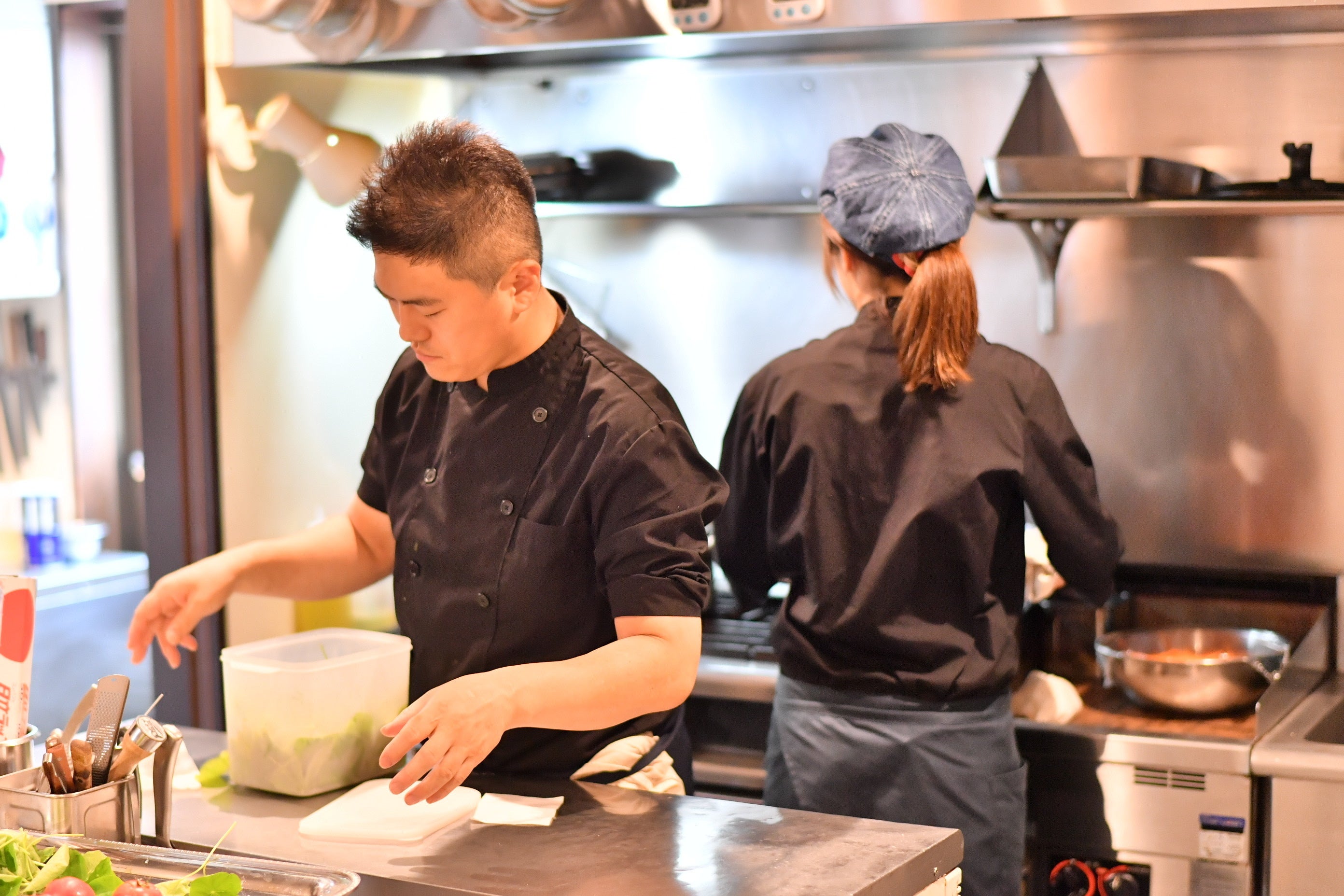 準備を進める長南シェフ(左)