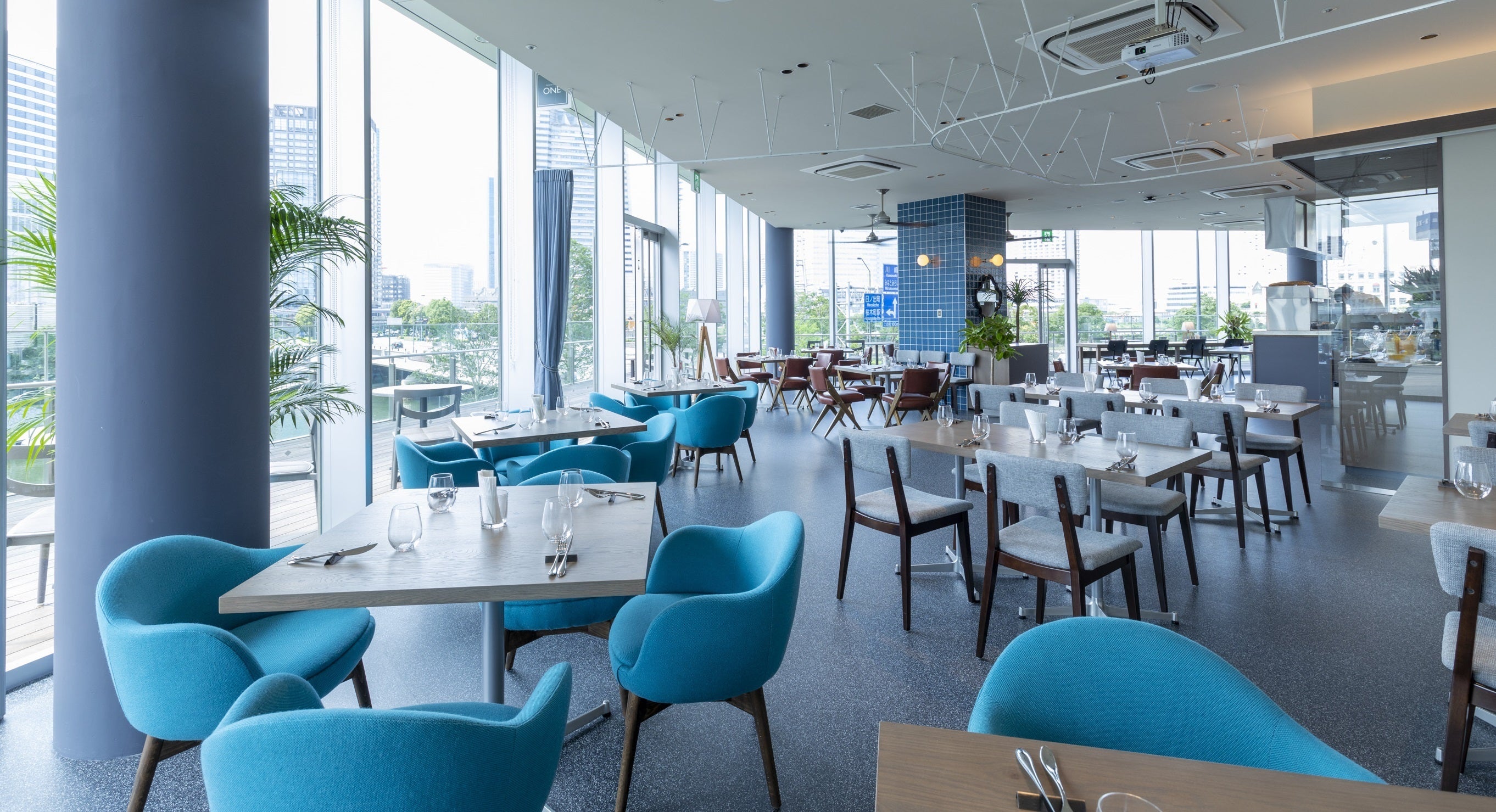 立地は横浜市の新市庁舎内のみなとみらいを一望に出来る最高のロケーション。