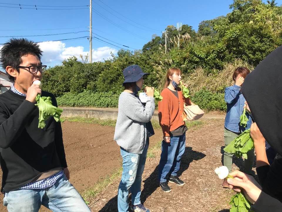 土から堀たての蕪をみんなでかじる