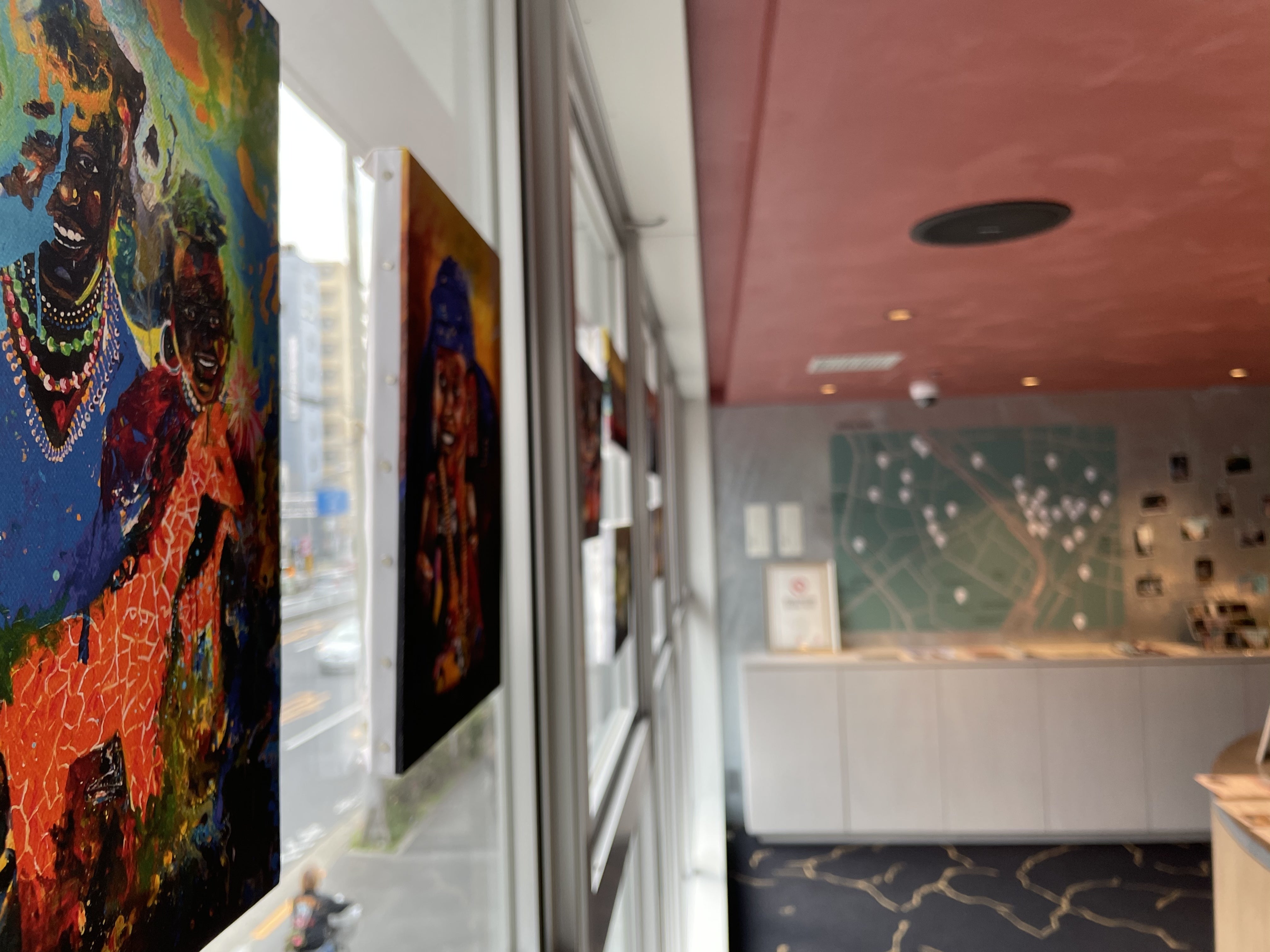 LANDABOUTはそんなラブホ街を突き抜けて聳え立つ大きな建物。町と旅人の交差点。一階はおしゃれなレストランで2階に上がるとホテルの受付があります。今回は受付近くの窓にGANZA ODARTの展示をさせて頂いてます。LANDABOUTにチェックインの皆様、ぜひGANZAのアート作品をご覧ください。