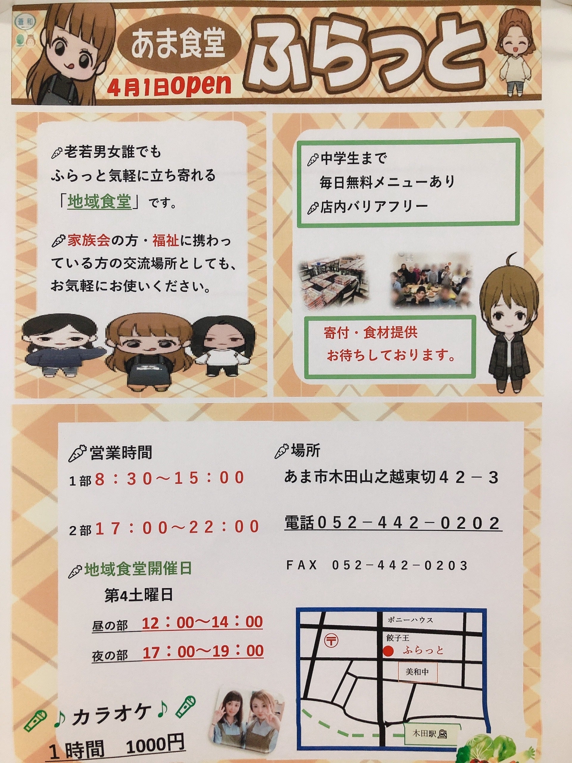 愛知県あま市にみんなの居場所づくり・地域食堂を毎日開催を目標に「あま食堂 ふらっと」を立ち上げするためのプロジェクトです。