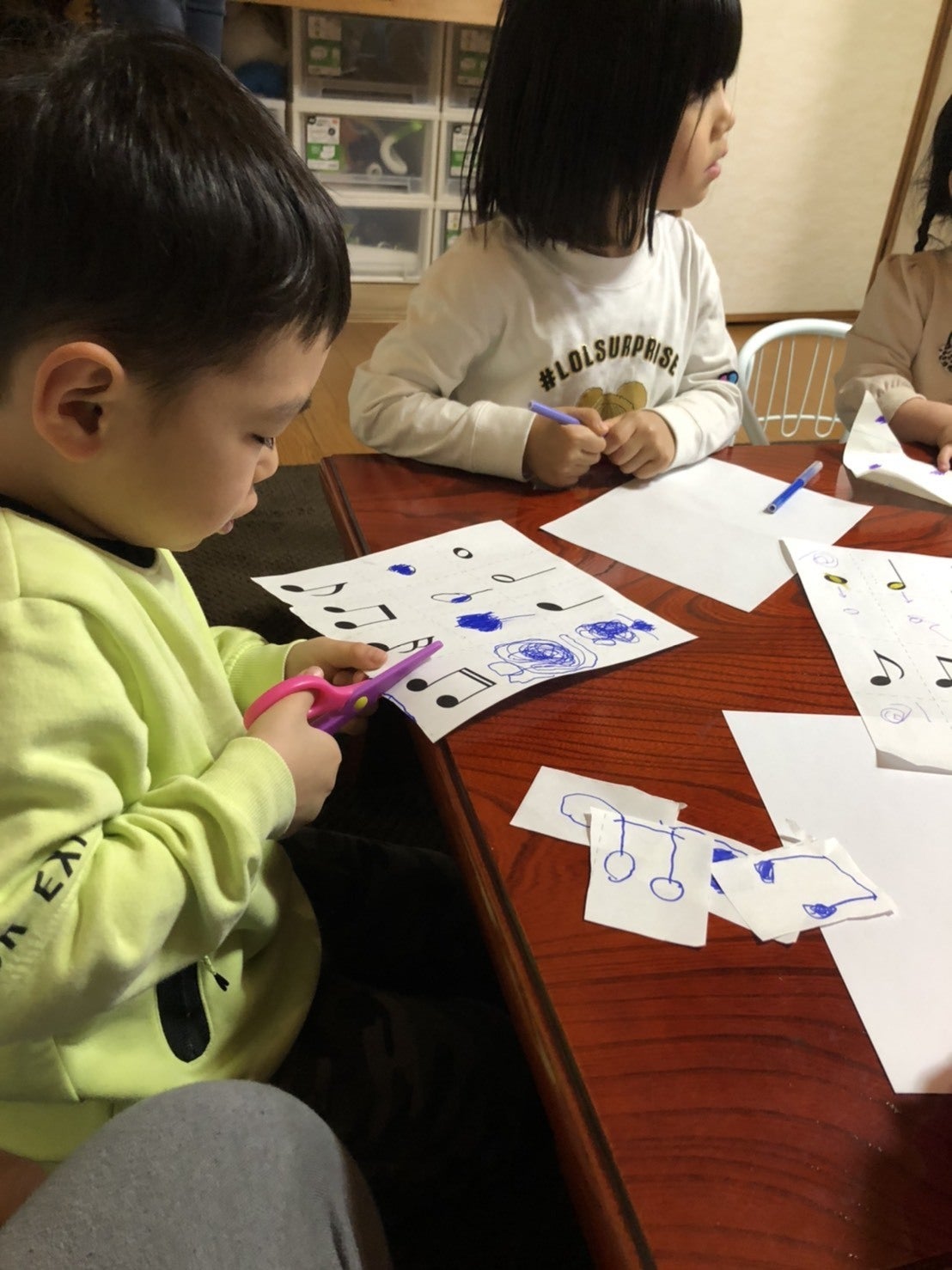 音符を真似て描いて、色を塗ってどんな音が出るのかな?