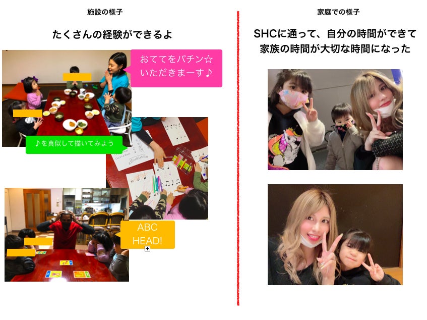 子育てをする中で日本は習い事をすることや生活する上で国からのサポートが少なく、生活がギリギリという家庭が多いという問題が見えました。もちろん私も裕福な家庭ではなく、生活で一杯一杯です。ただ子供の未来を考えたときに英語や音楽、ダンス、アートなど様々な活動ができ、良い教育やどの様な環境下の子供でも受けられる場所があったらいいな。日本の未来のためにも、子供のためにも、何かできないか?という気持ちからSHCを立ち上げたい一心で橘マリーさんに相談しました。