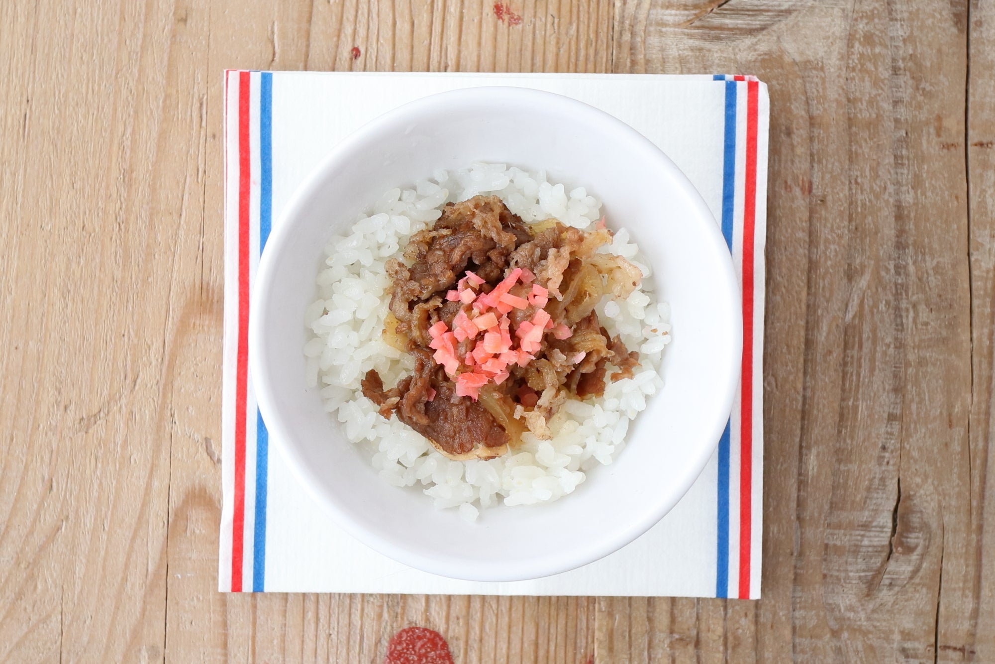 こちらの牛丼の量は、「ごはんがおいしい自家製牛丼」の1/3の量になっています。