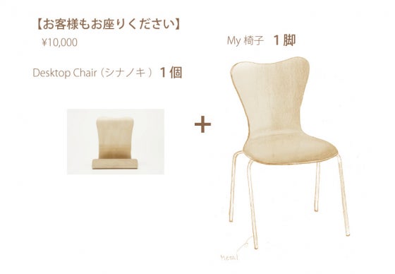 CAMPFIREでプロジェクトを開始してからたくさんの人から聞かれた質問があります。それは:「My 椅子って何ですか!?」というもの。CAMPFIREのプロジェクトページでは、【お客様もお座りください】「親子椅子セット。Desktop Chairとお揃いの、“My椅子”(ホンモノ)を制作します!」と書いていますが、「結局なんなの?写真も無いし・・・」という印象を持たれるのも無理ありません。ネーミングに茶目っ気を出したのですが、結果的に分かりにくくなってしまいました。ということで、今回は「My椅子」を公開します!・・・といってもイラストです。すみません。これは、CAMPFIREで支援いただいた数のみを完全受注生産する都合上、どうしても事前に試作品を作れません。この椅子は、Desktop Chair(通常シナノキバージョン)と全く同じ素材、同じ工場で作られます。この工場は、ヨーロッパの某家具ブランドの家具を製造している工場ですので、品質についてはご安心ください。ちなみに脚の部分は鉄です。
