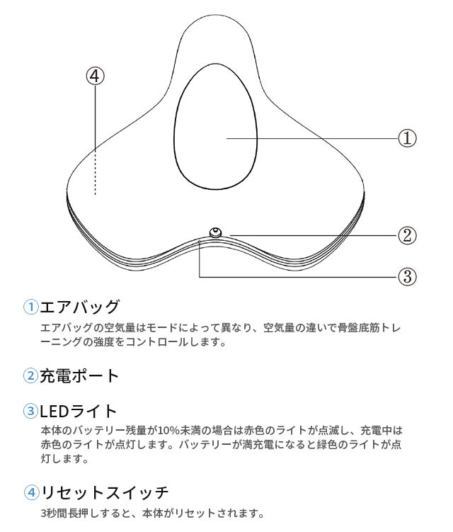 A3:使用中は足を広げてください。息を止めたり、他の筋肉を収縮させないよう注意してください。また、タイツやコルセットなどを着用しないでください。