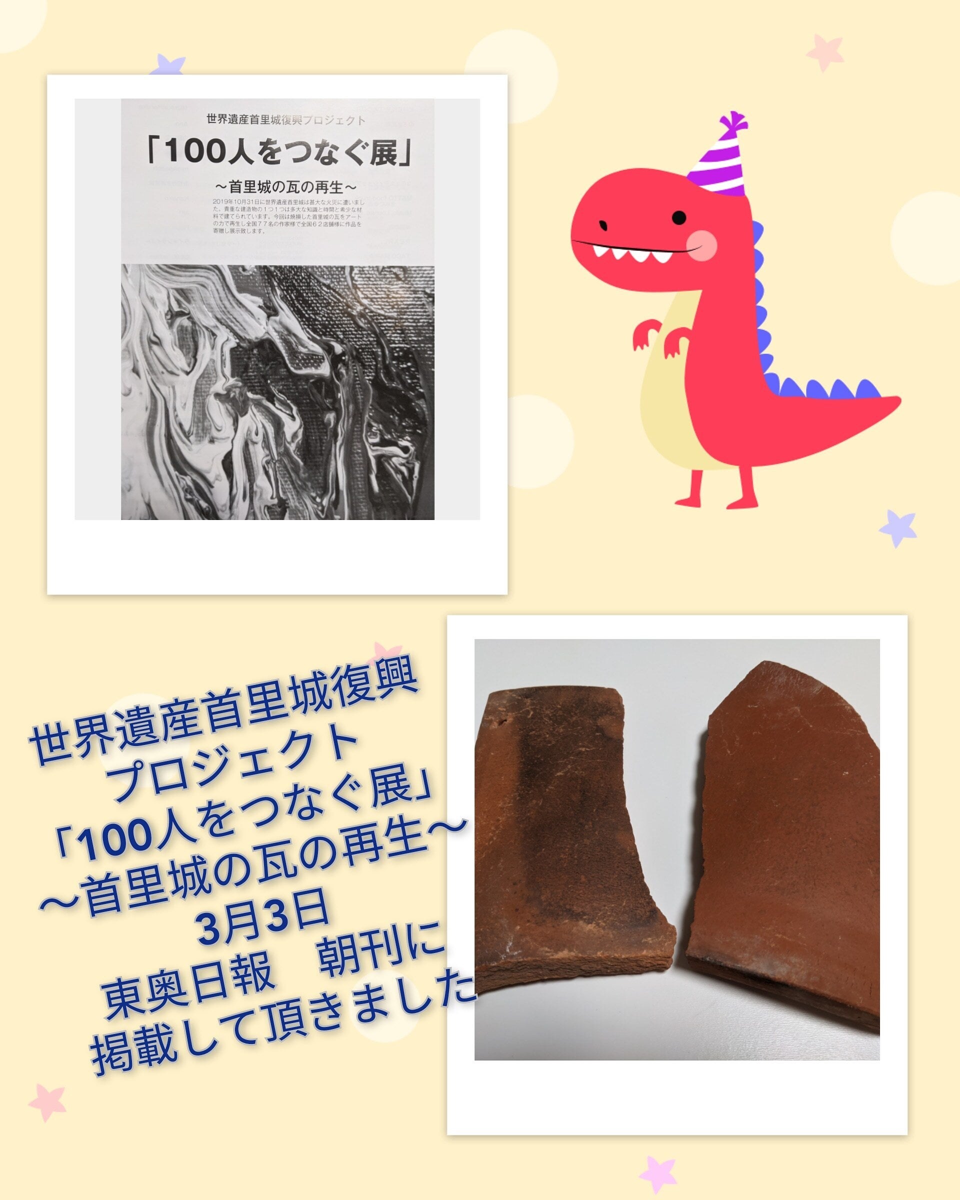 世界遺産首里城復興プロジェクト「100人をつなぐ展」〜首里城の瓦の再生〜東京新聞3月2日 夕刊掲載して頂きました