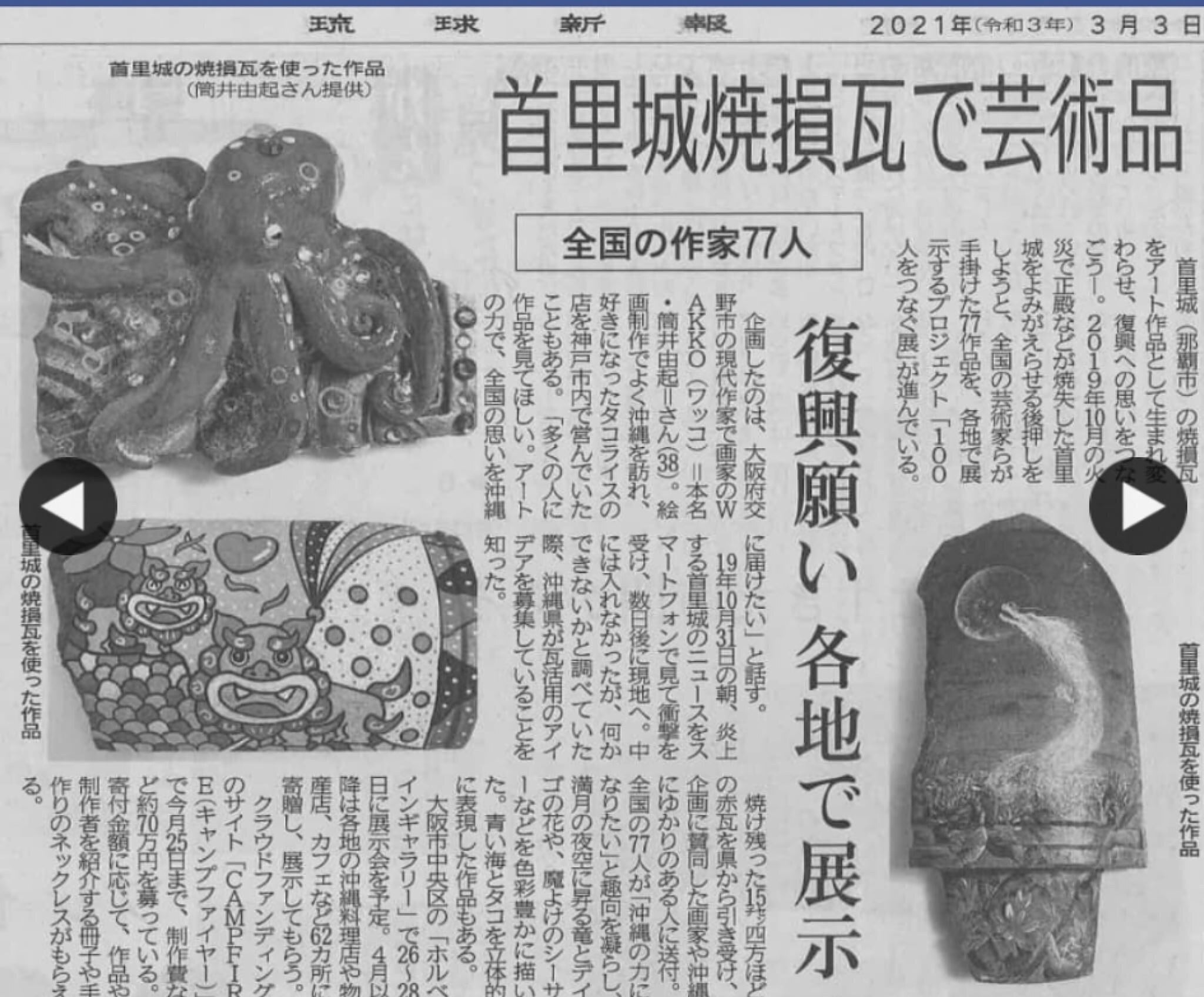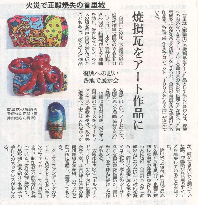 ■世界遺産首里城復興プロジェクト 「100人をつなぐ展」〜首里城の瓦の再生〜琉球新報 3月3日の朝刊に掲載されました。