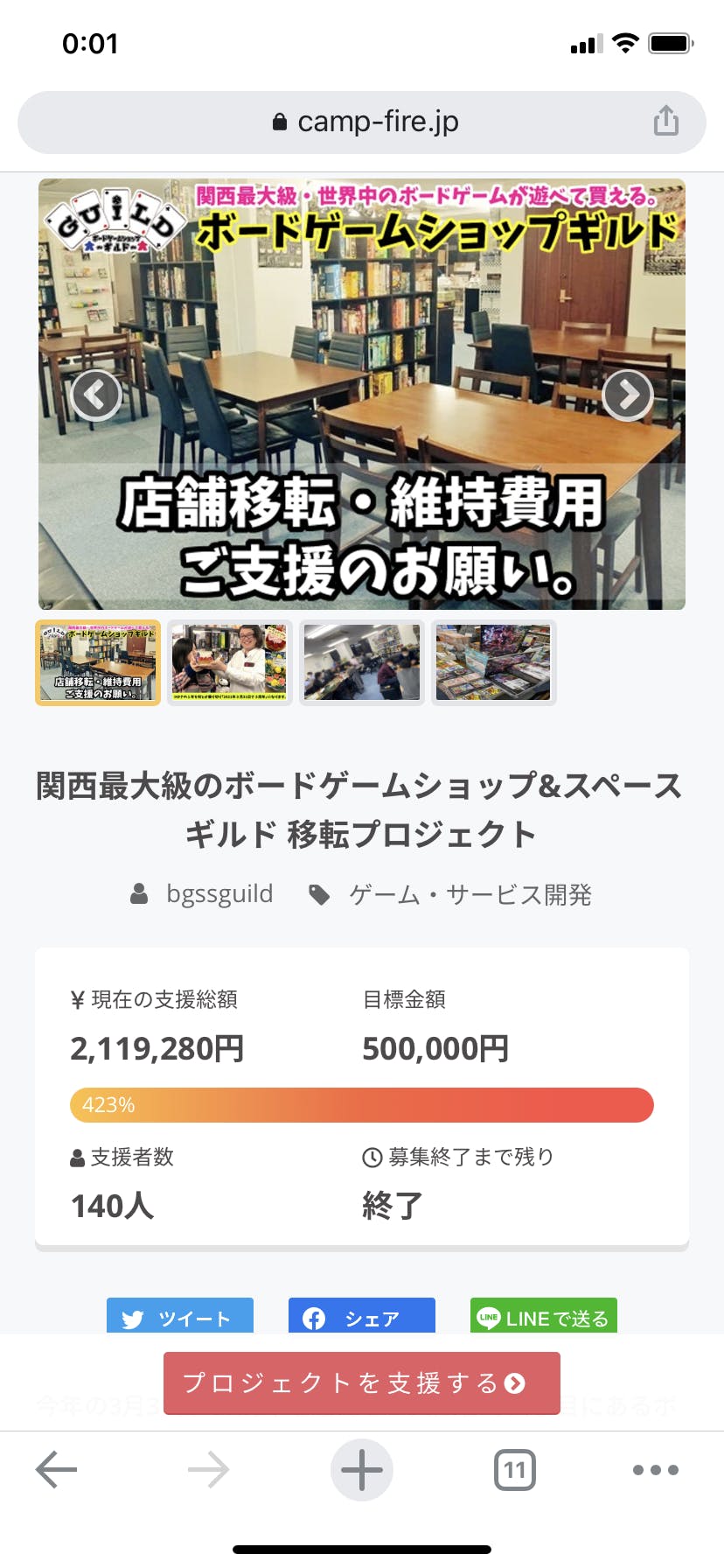 2021/03/29 00:08クラウドファンディング終了しました!最終423%!!!!本当にたくさんの御支援ありがとうございました!!明日、明後日をプレオープン期間という形で営業しつつ準備させていただき、3月31日のボードゲームショップギルド3周年をもちまして『リニューアルオープン』とさせていただきます!みなさんの御来店心よりお待ち申し上げております。なお、リターンにつきましては、4月中旬以降を目処に作成等させていただきますので、もうしばらくお待ちくださいませ。重ねて本当にたくさんの御支援ありがとうございました。今後ともボードゲームショップギルドをよろしくお願いします。ボードゲームショップギルドオーナー 大阪 もっと見る
