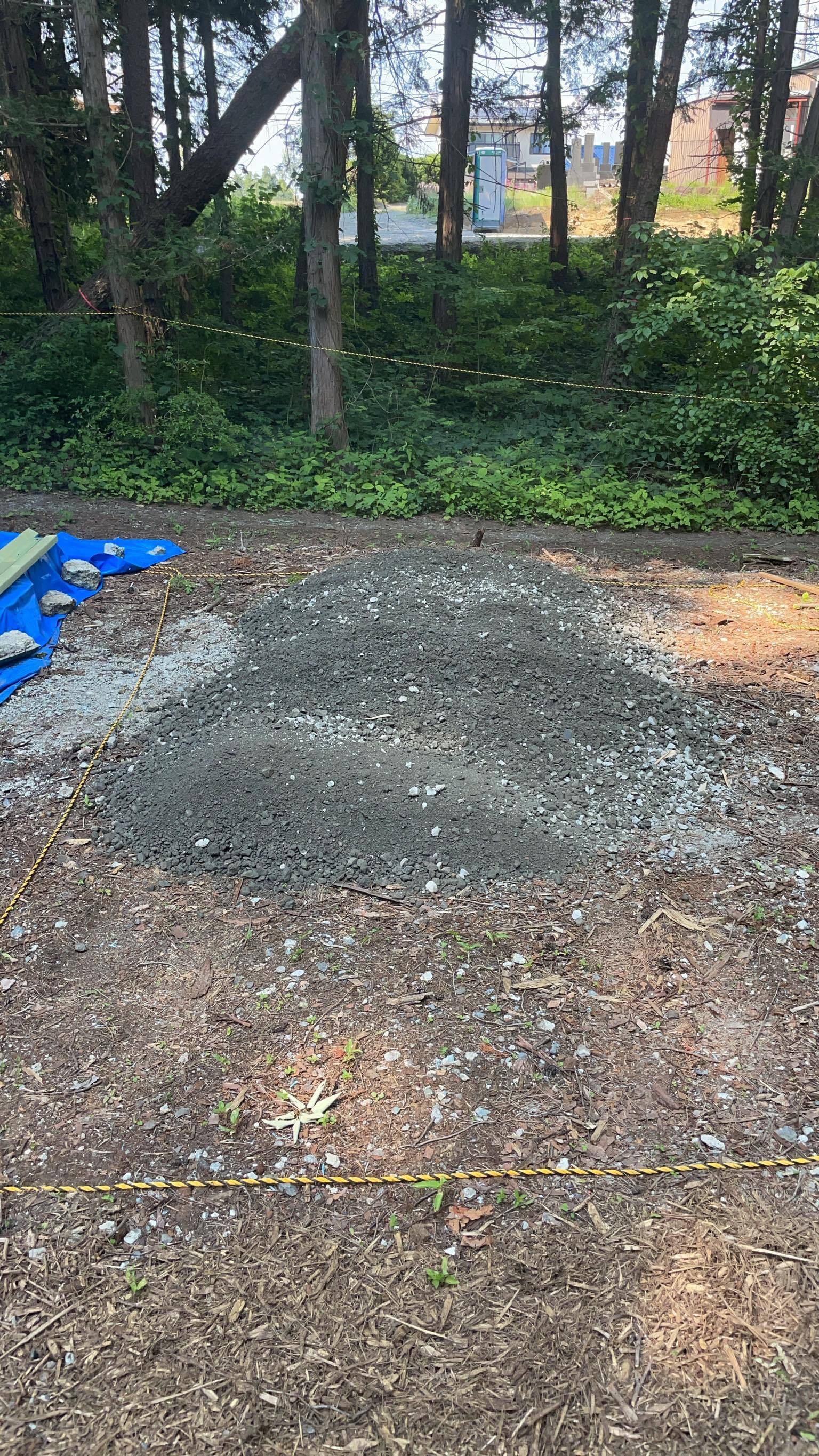 小屋&トイレの設置場所に、砕石を入れていただきました。