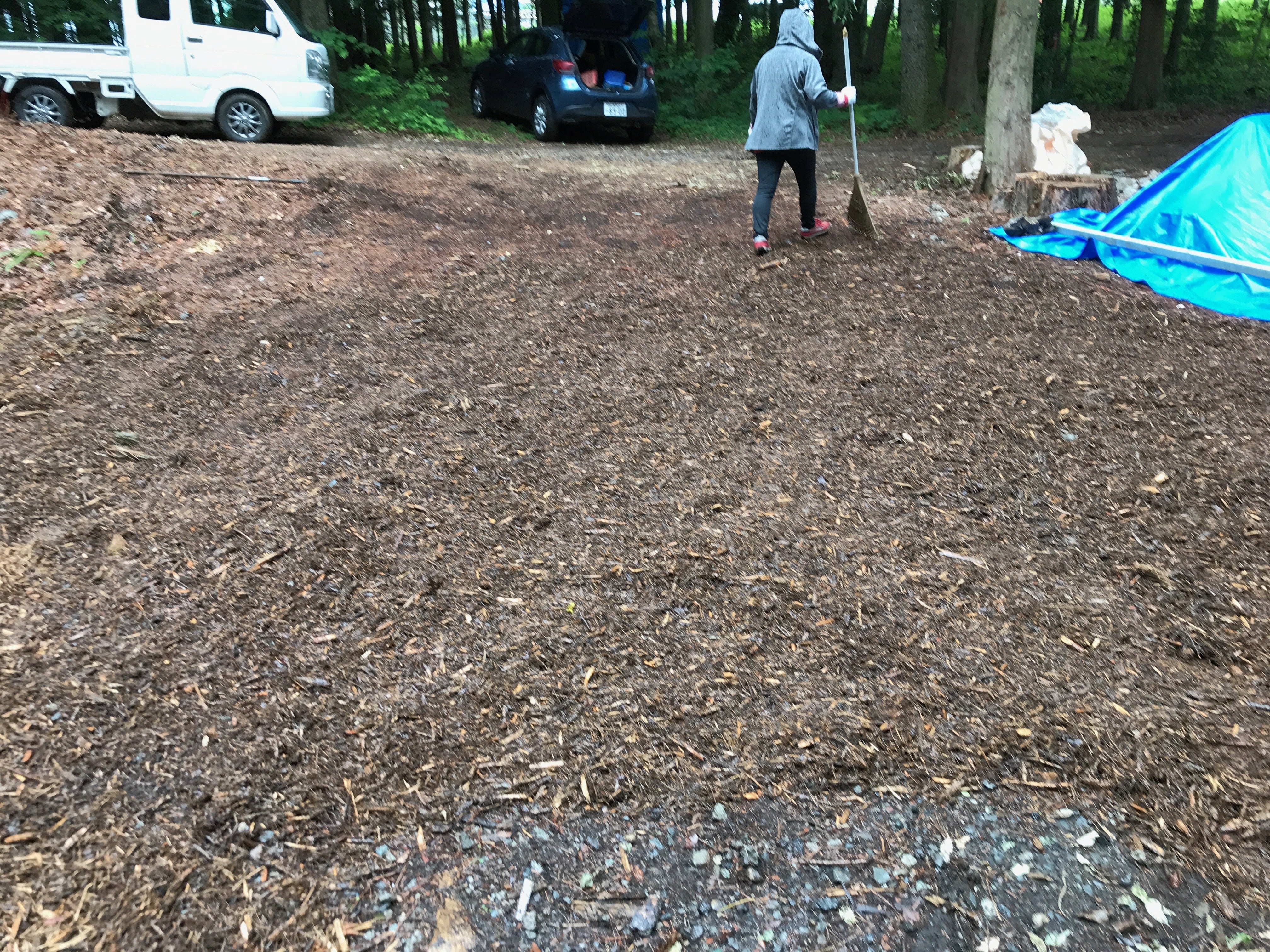 それまでは雑然としていた感じの森の広場ですが、すっきりした上、ウッドチップのふかふか感が足裏にやさしくていい感じになりました!