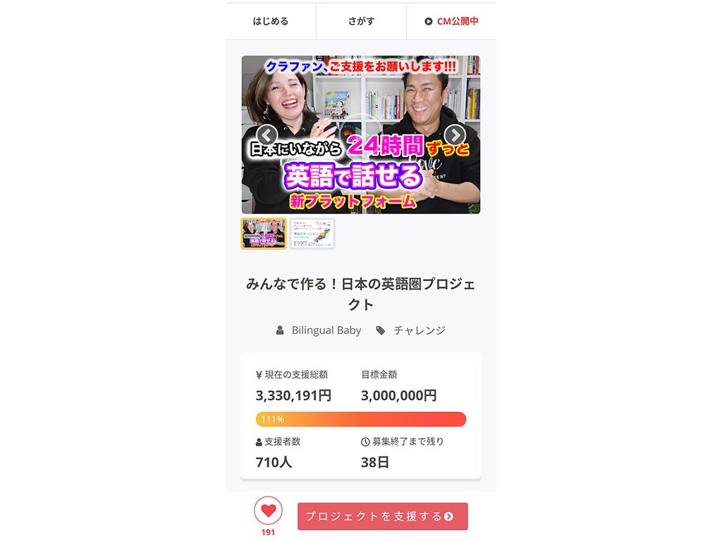 このプロジェクトを通して「英語ステーション」という新しいサービスをスタートさせ、国内にいて長時間大量に英語に触れる環境を作ること、そして、それを必要としている方に1人でも多く周知し、活用していただくことが、私たちの使命だと感じています!!!