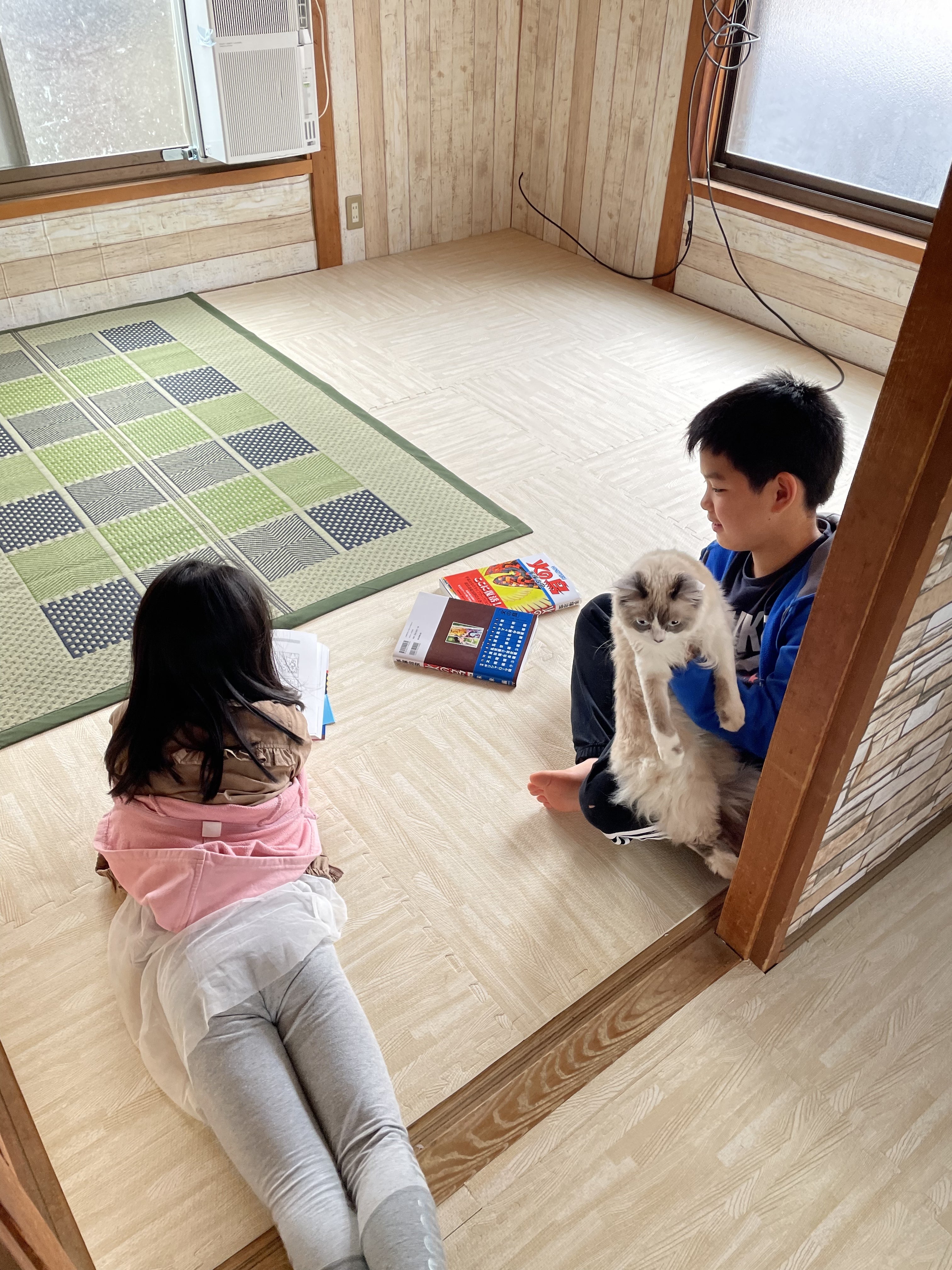 翌朝は子供達2人と猫で寝転んでマン喫