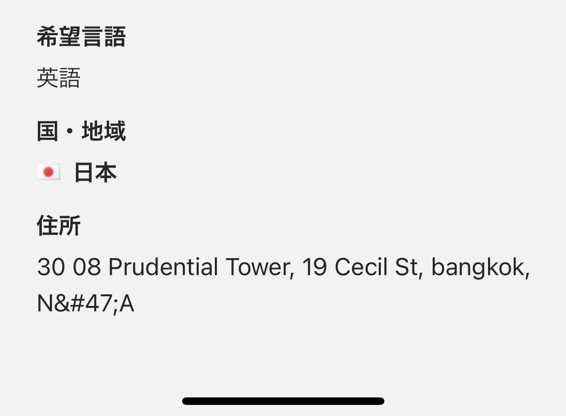 住所はバンコクオフィスのものでした