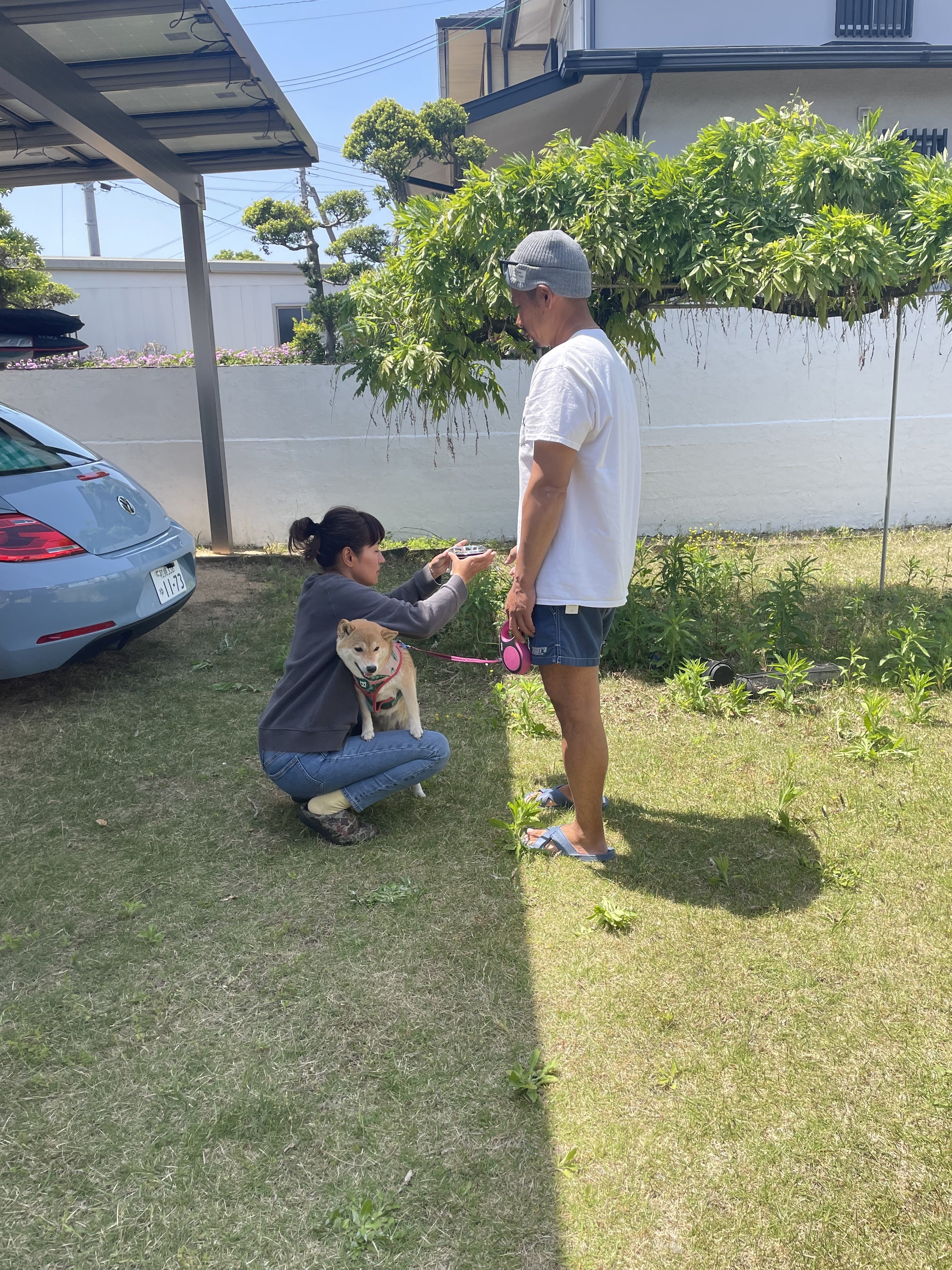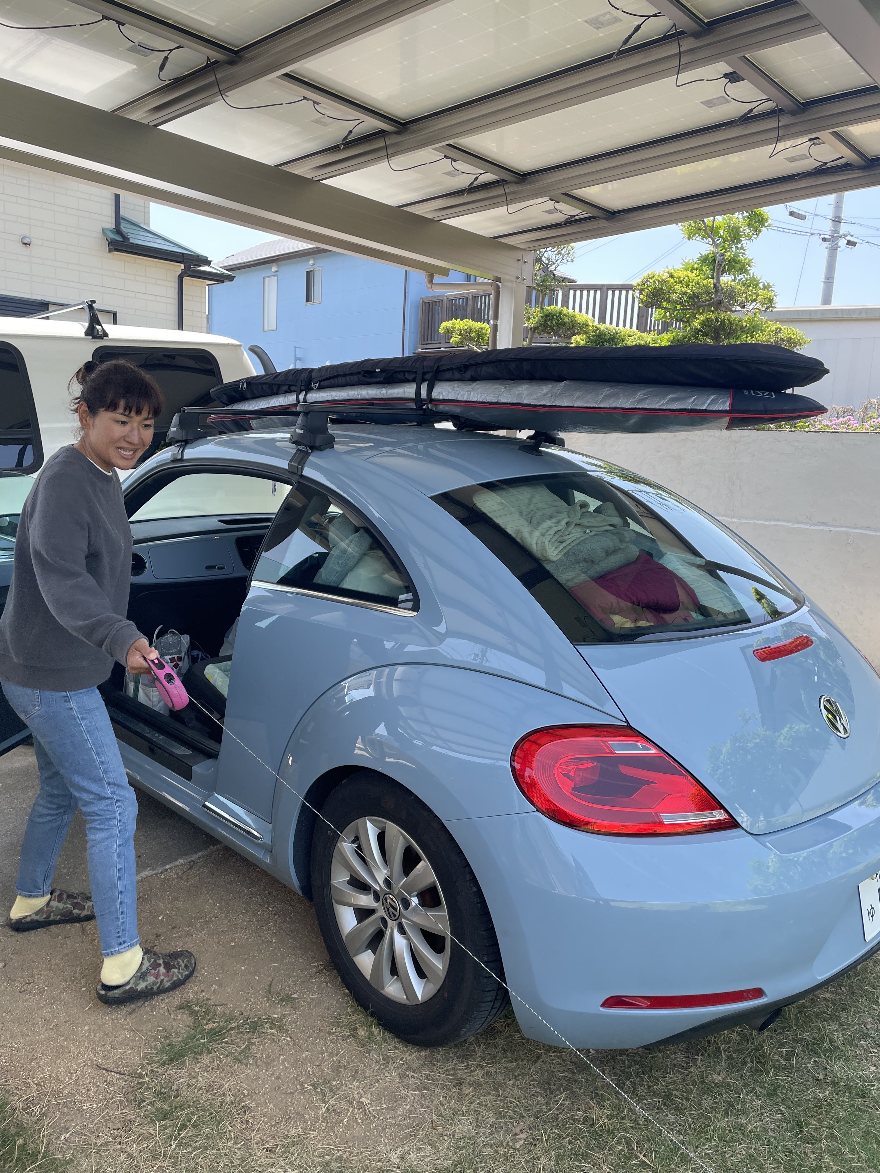 ビーチ駐車場脇の友人宅で休憩中