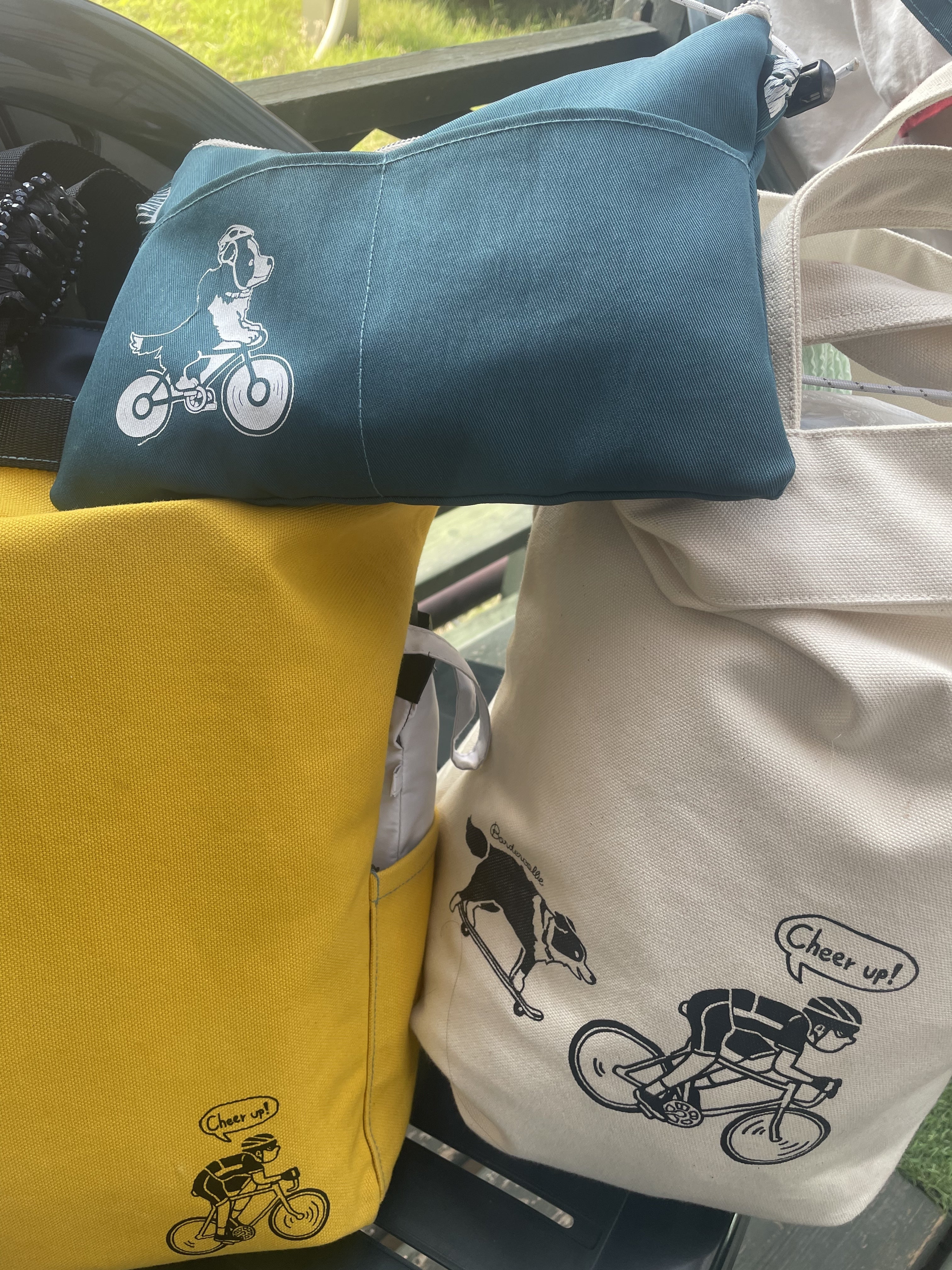 自転車とワンちゃん愛か溢れる手作りバッグ