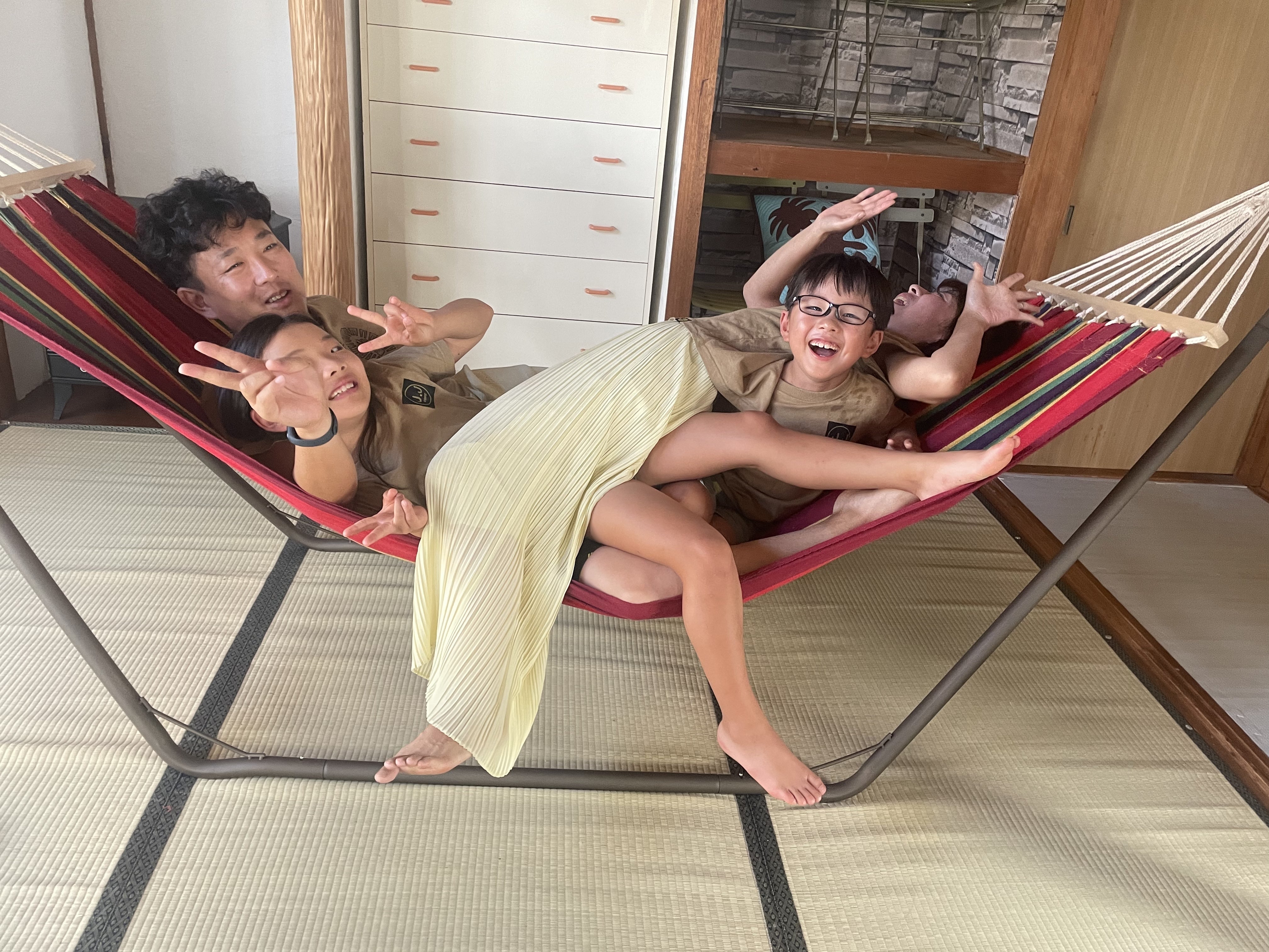 テントに替え、Family on ハンモック