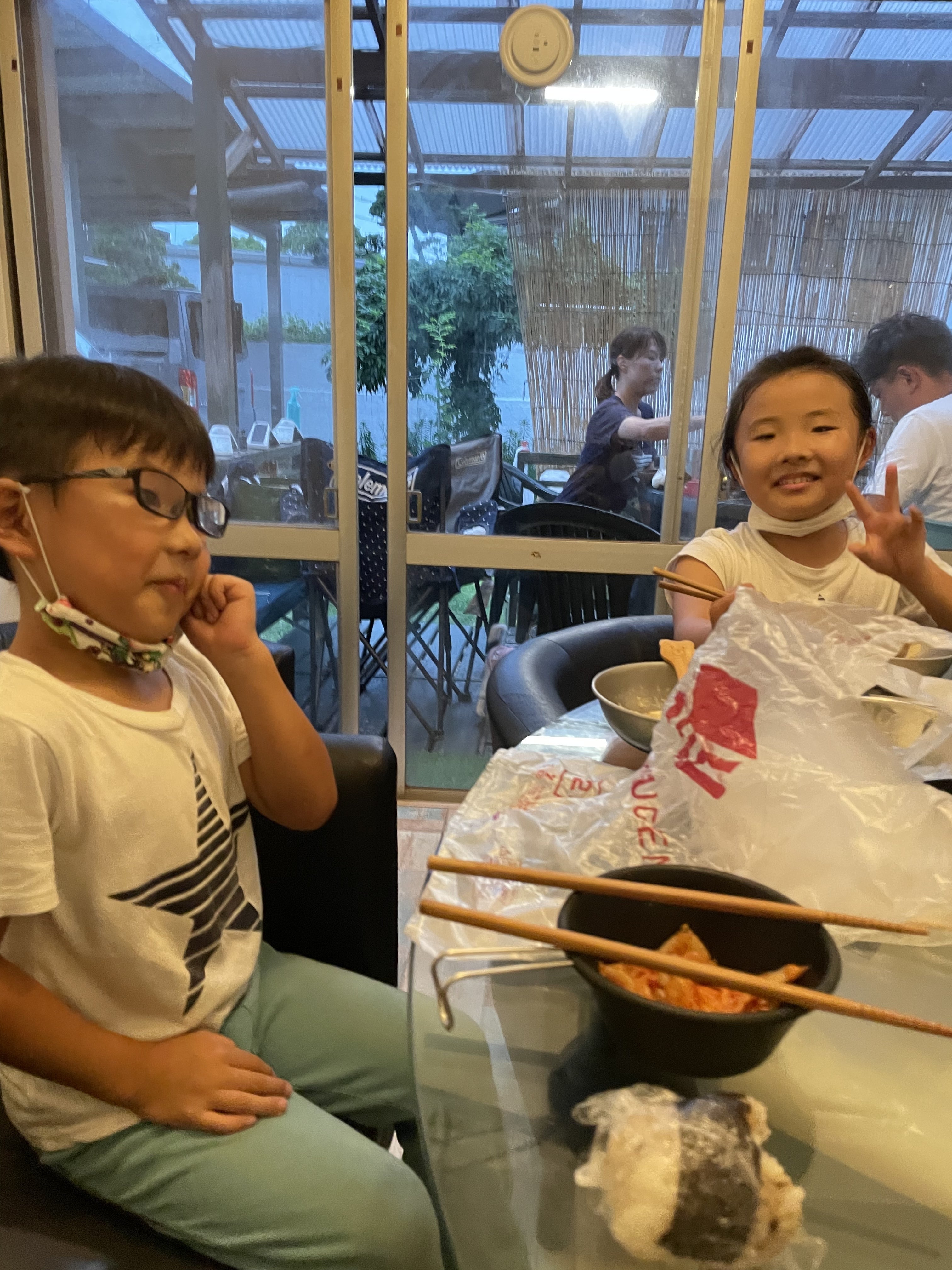 ワンワン2匹、小1小4ご夫婦の4人