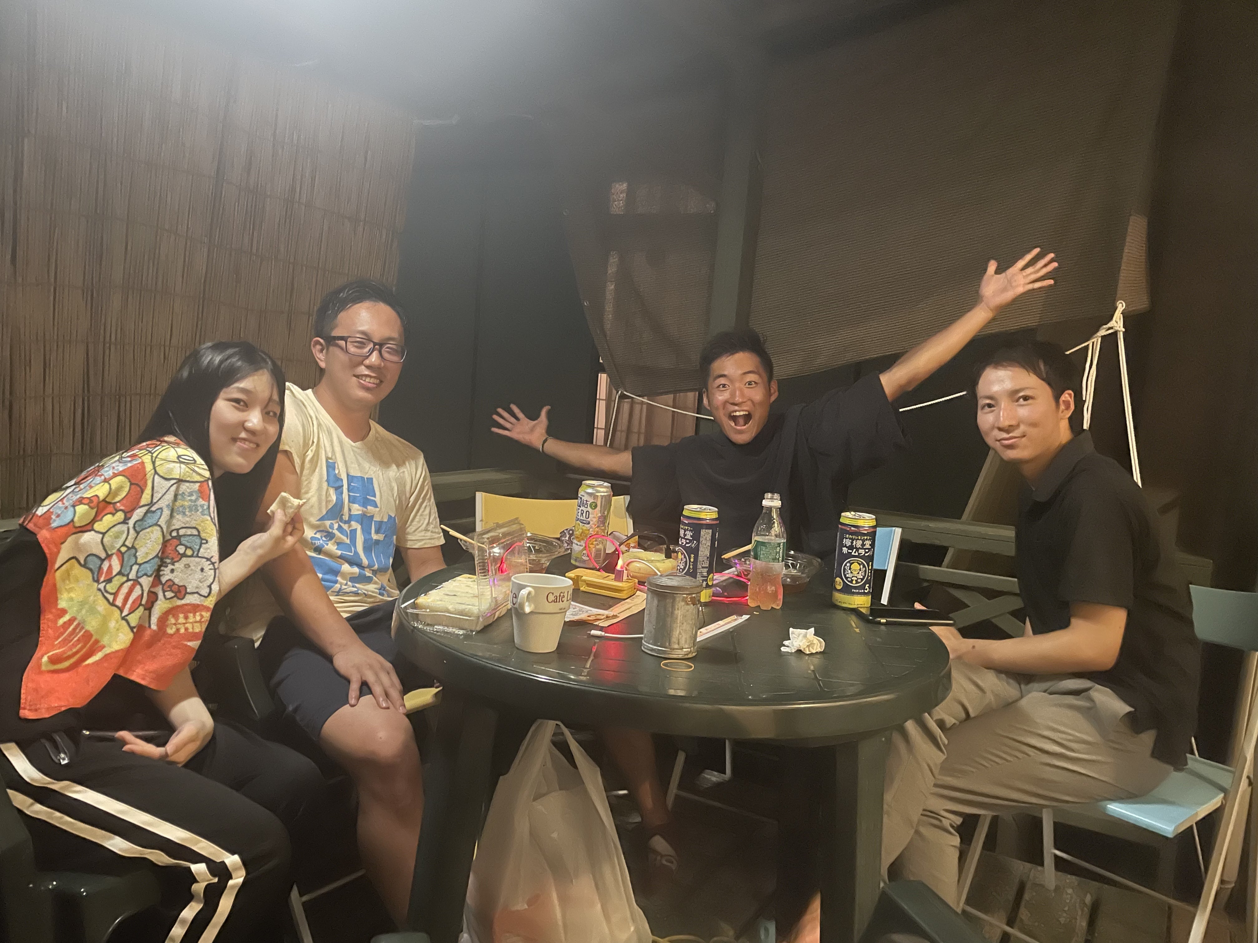 23時過ぎ、深夜の野外デッキで、ご歓談