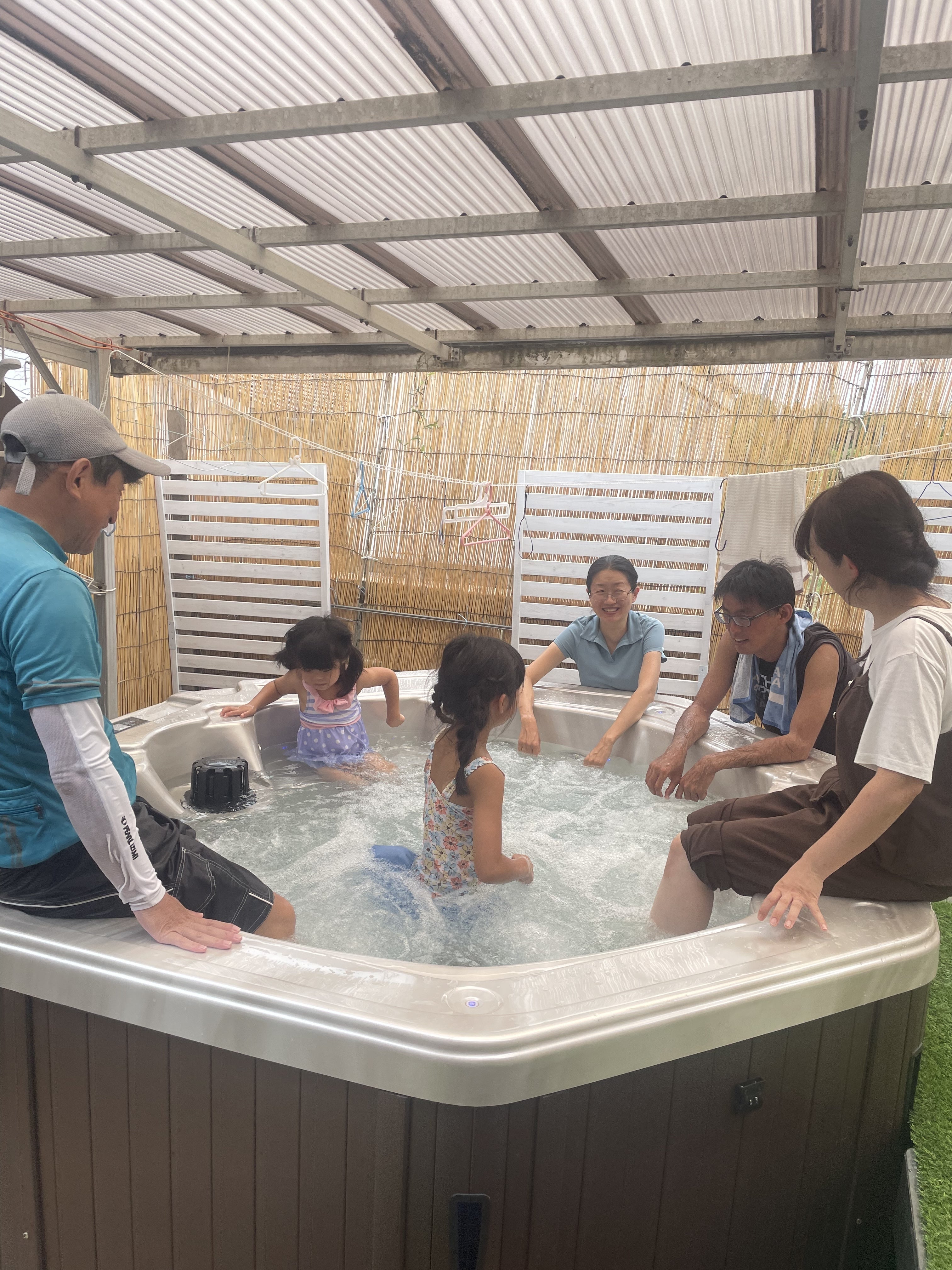 子供達は、ジャグジーとBBQの二刀流