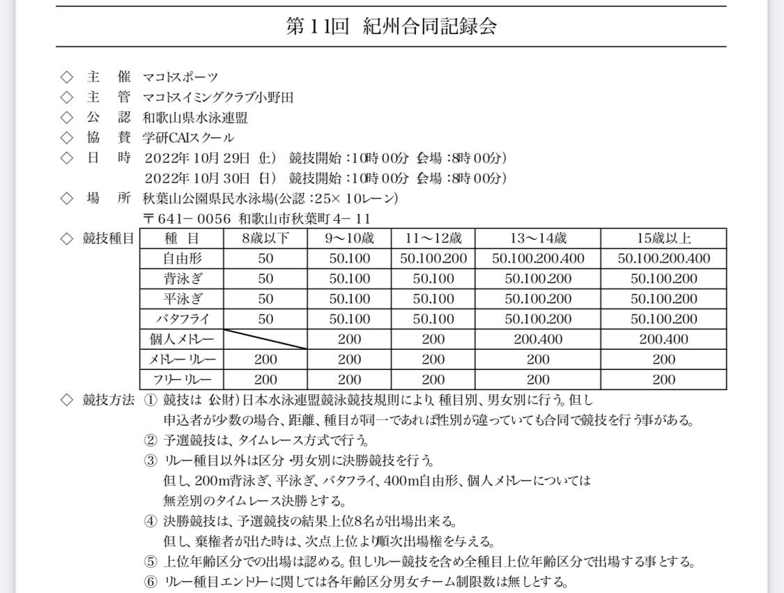 水泳大会の概要