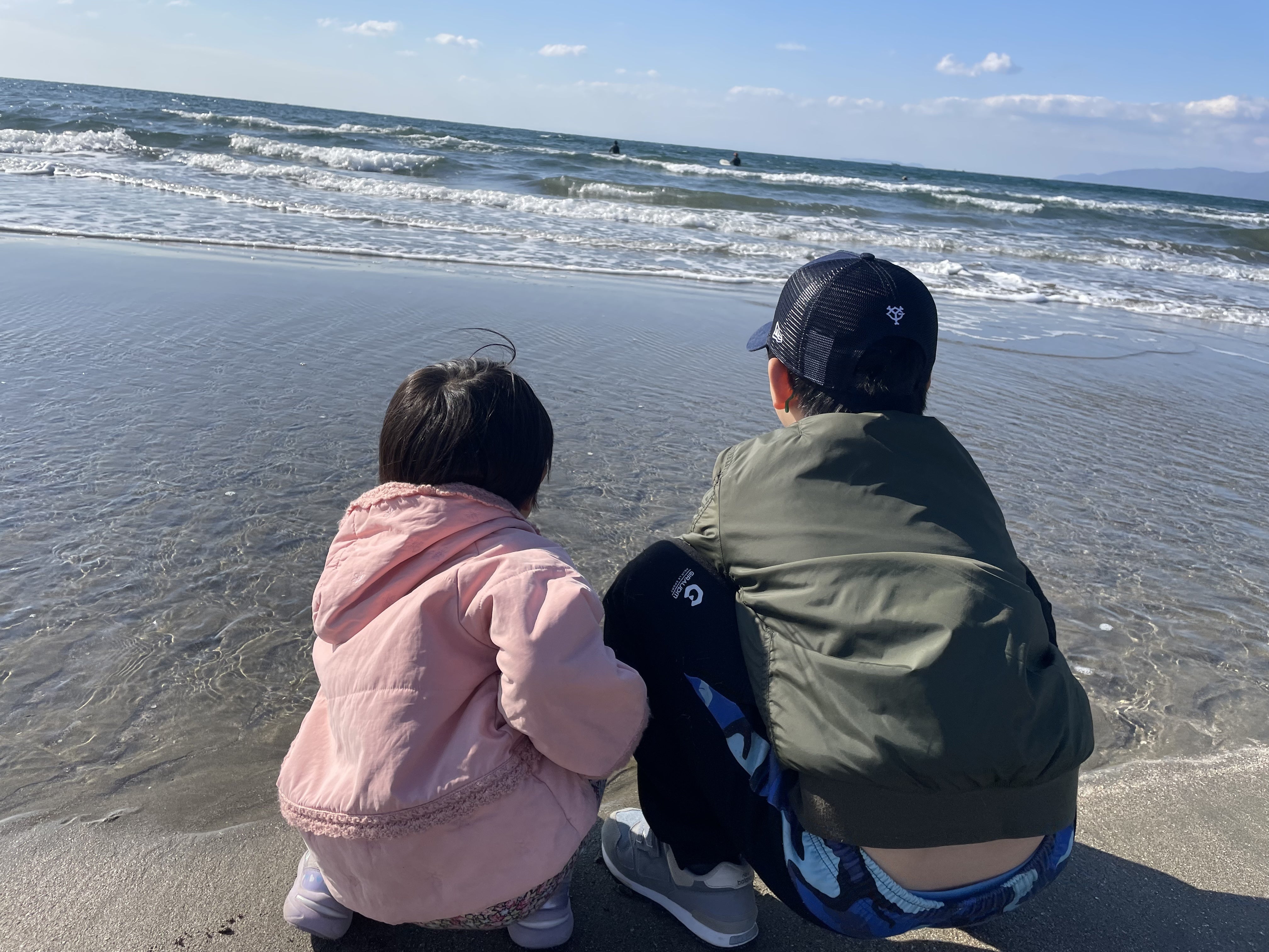 お散歩、公園を抜けたら磯ノ浦の砂浜