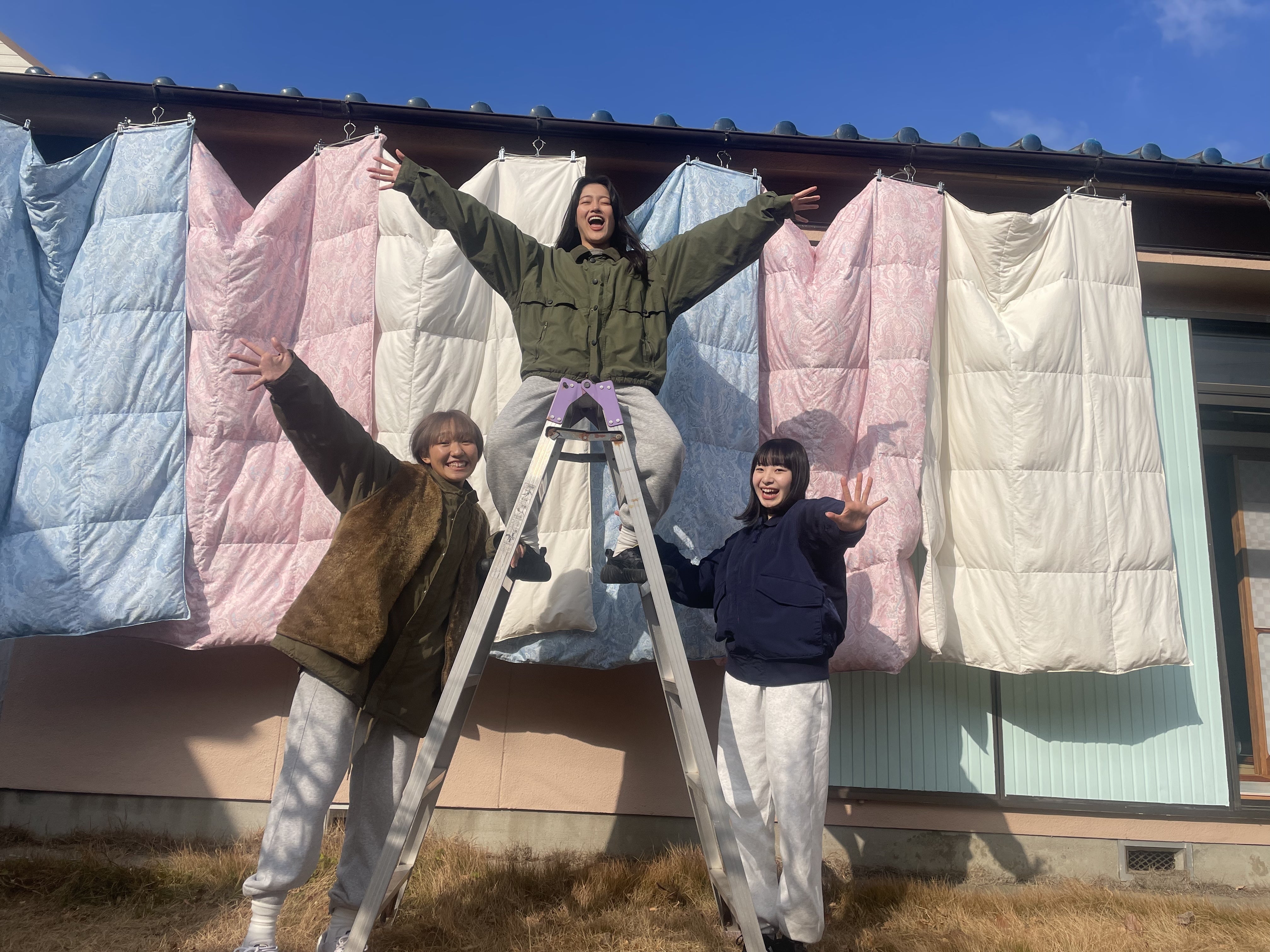 帰る前、片付けと天日干しのお手伝い