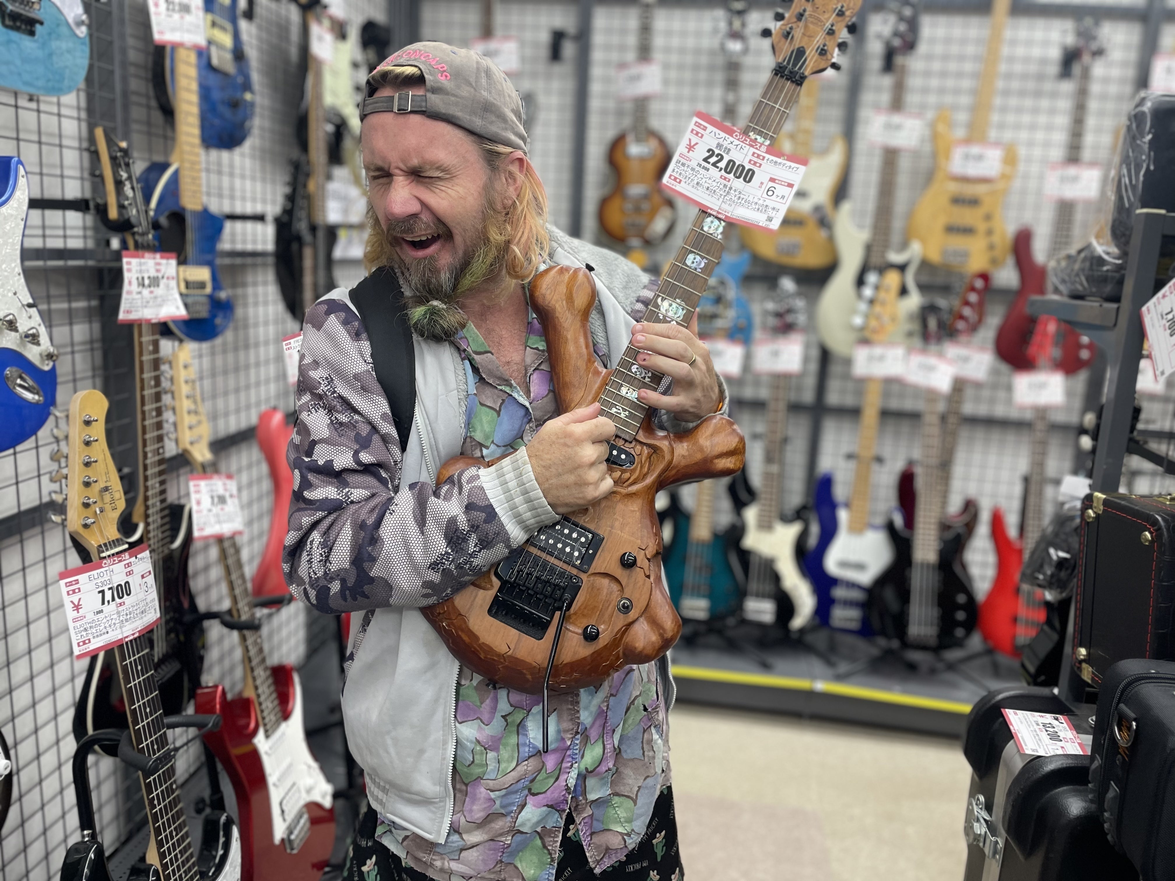 骸骨モチーフの手作りギターをゲット
