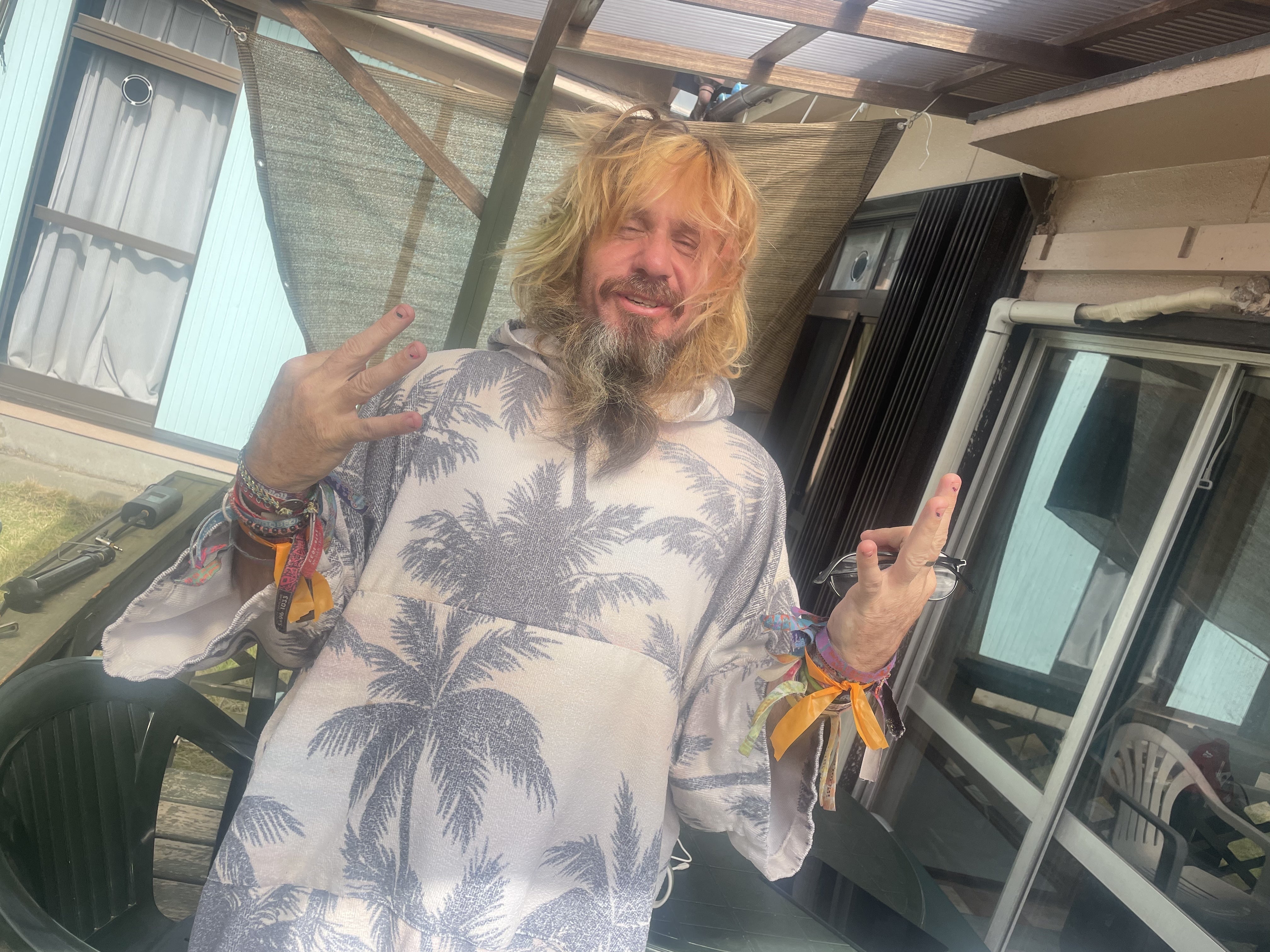 ド派手、両腕には音楽フェスのリボン