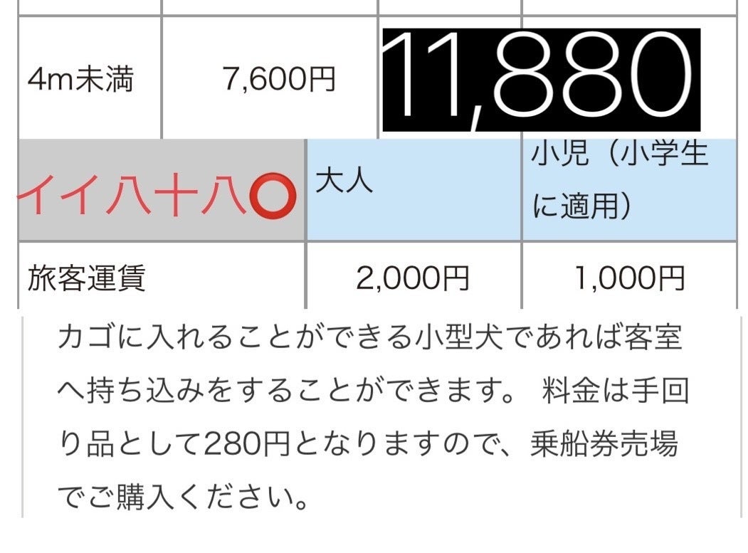 問題は、フェリーの場合に支払う値段