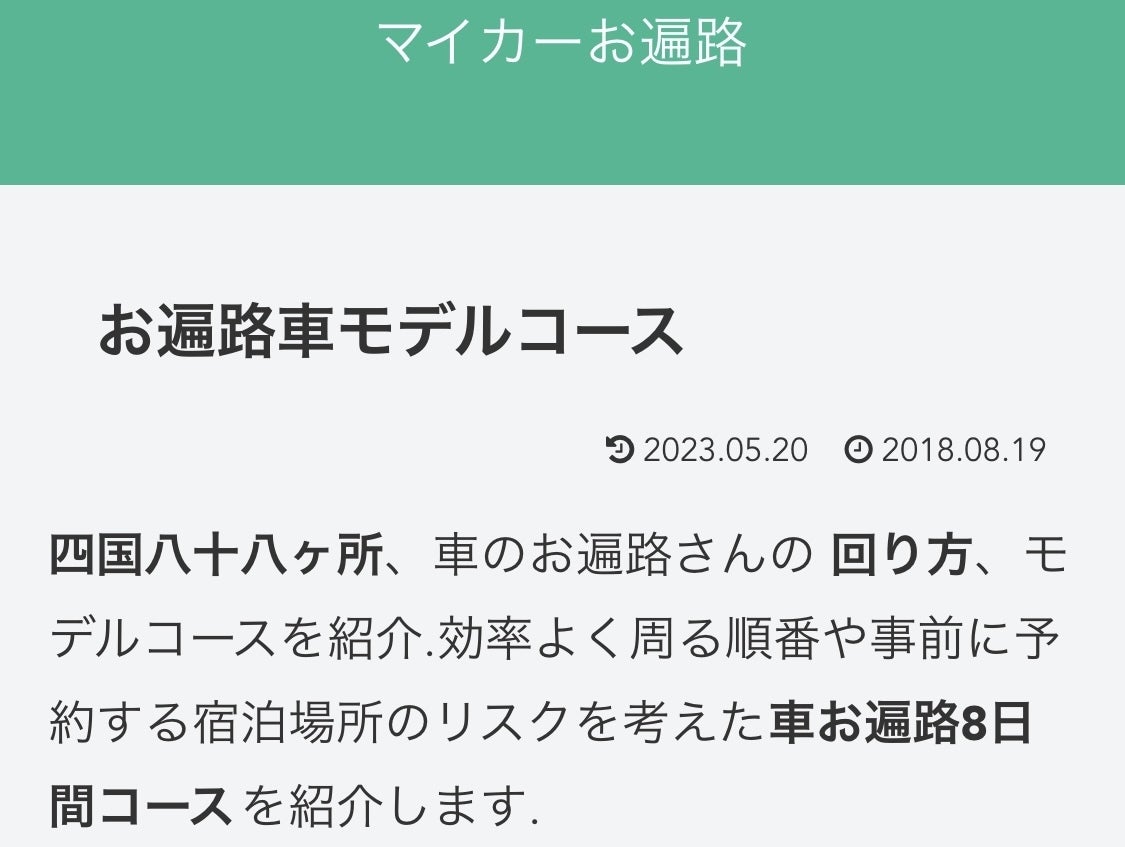 今回は、車遍路で全て合わせて8日間