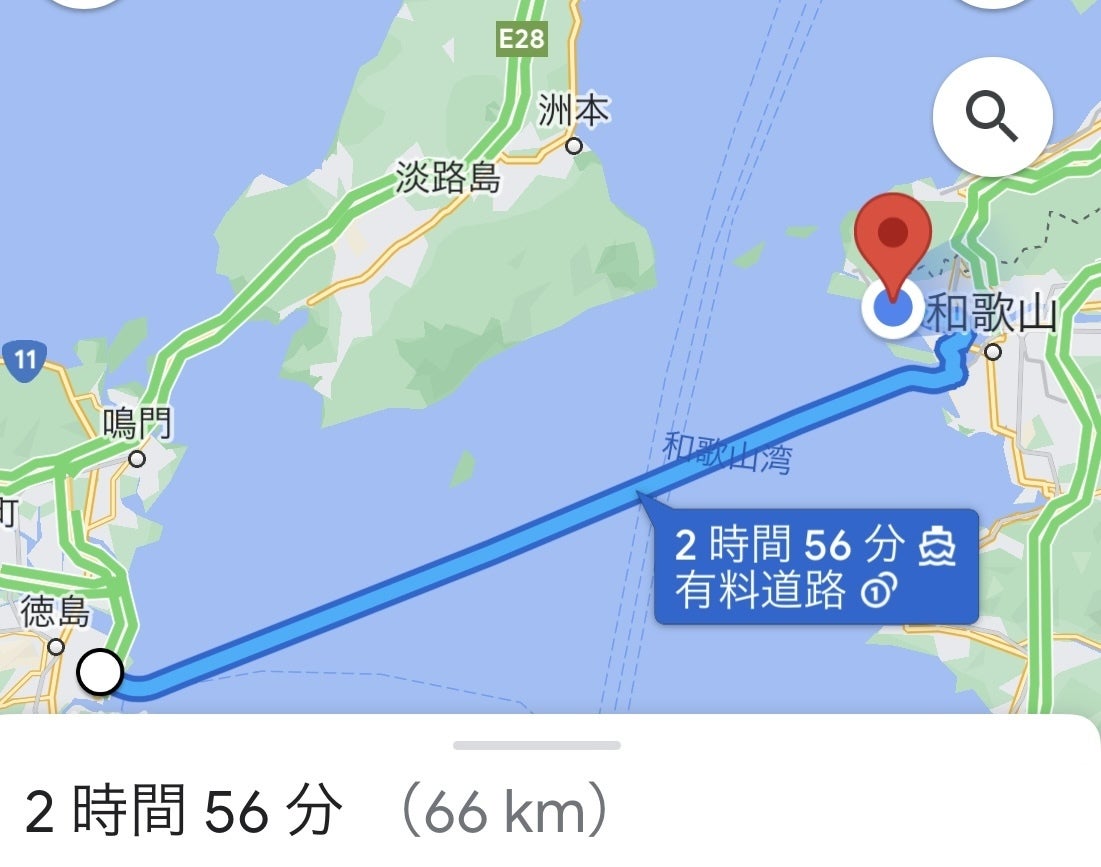 陸路は、和歌山までは約3倍の距離感