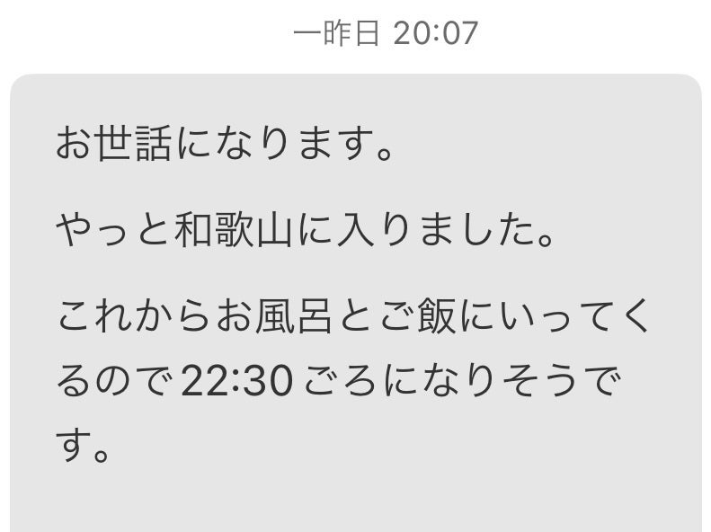 20時頃、不明だった予定時刻連絡受信